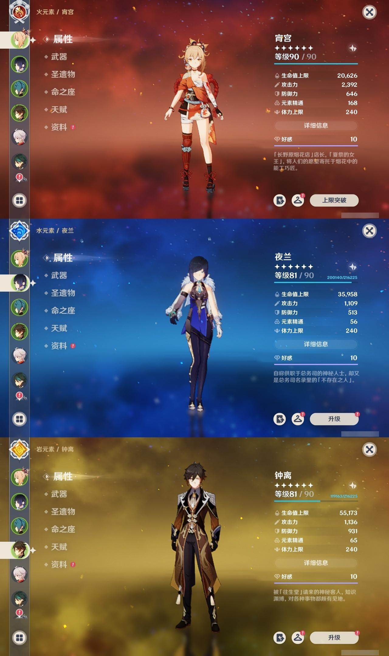 宵宫,钟离,枫原万叶,魈,神里凌华,雷电将军,申鹤,胡桃,八重神子,珊瑚宫心海,温迪,莫娜,迪卢克,优菈,琴,刻晴