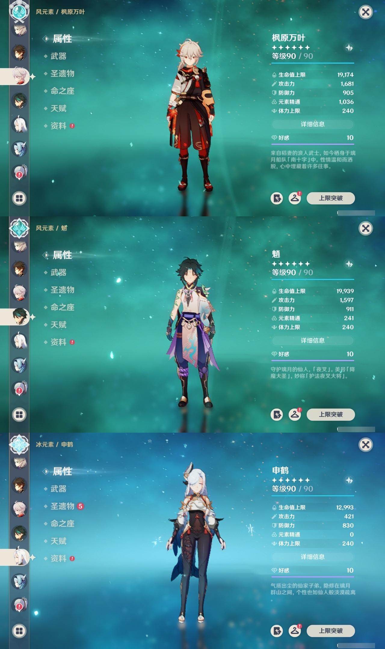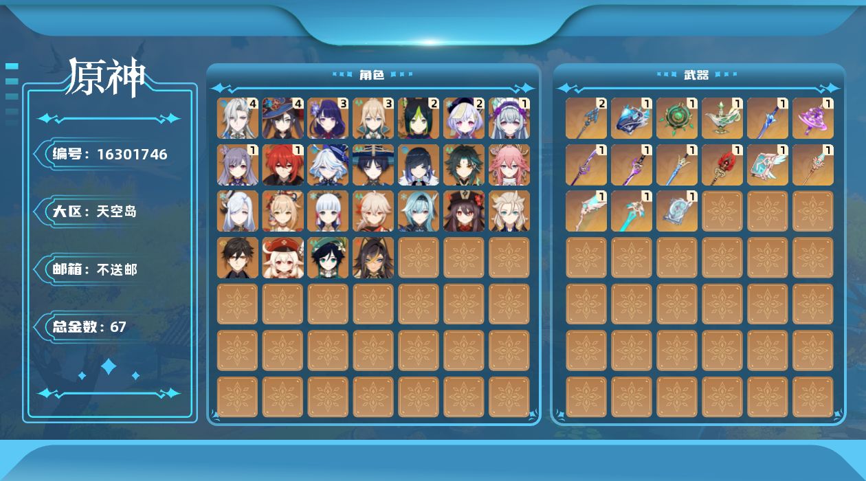 [16301746]60级/67黄/男主/29个五星角色/16个五星武器