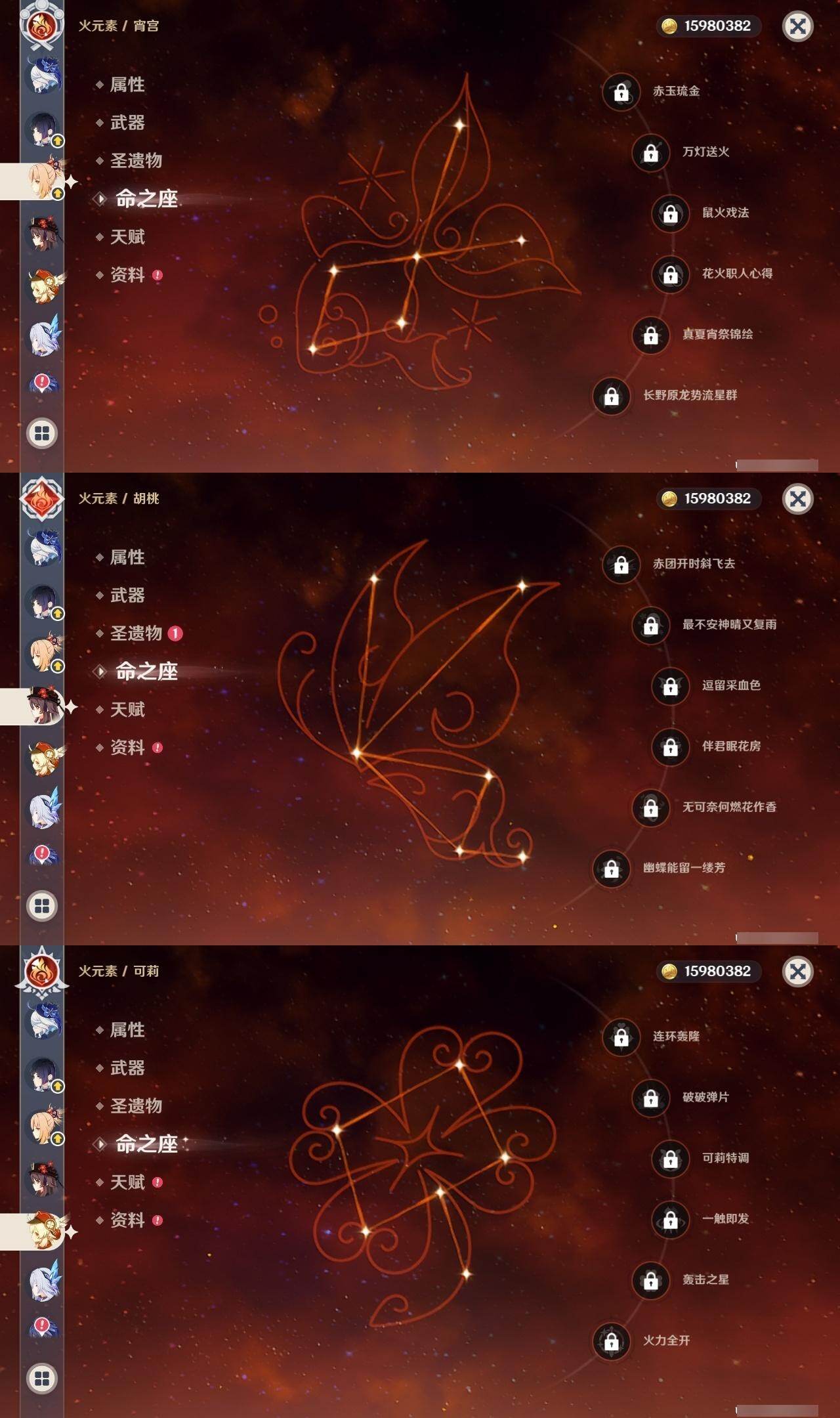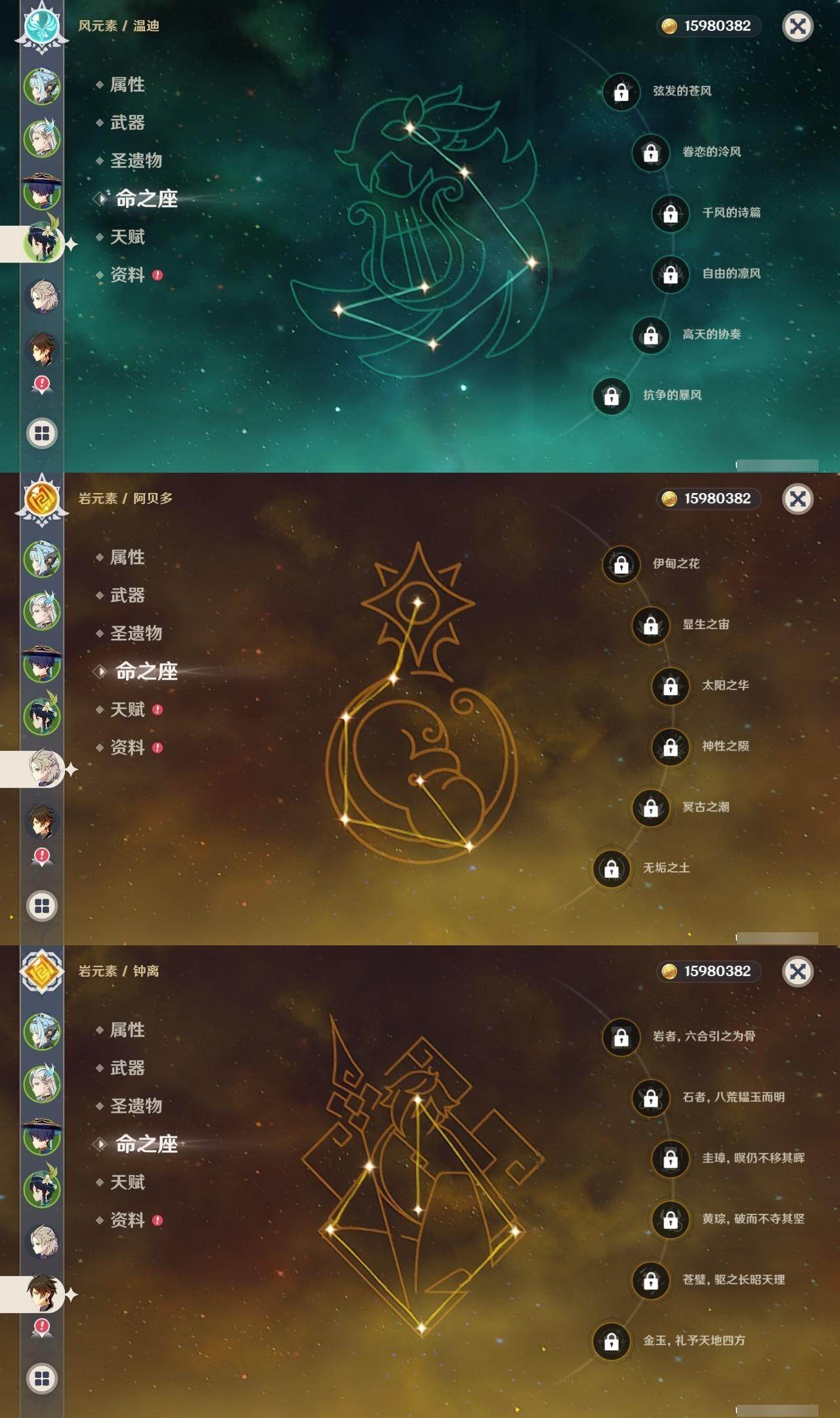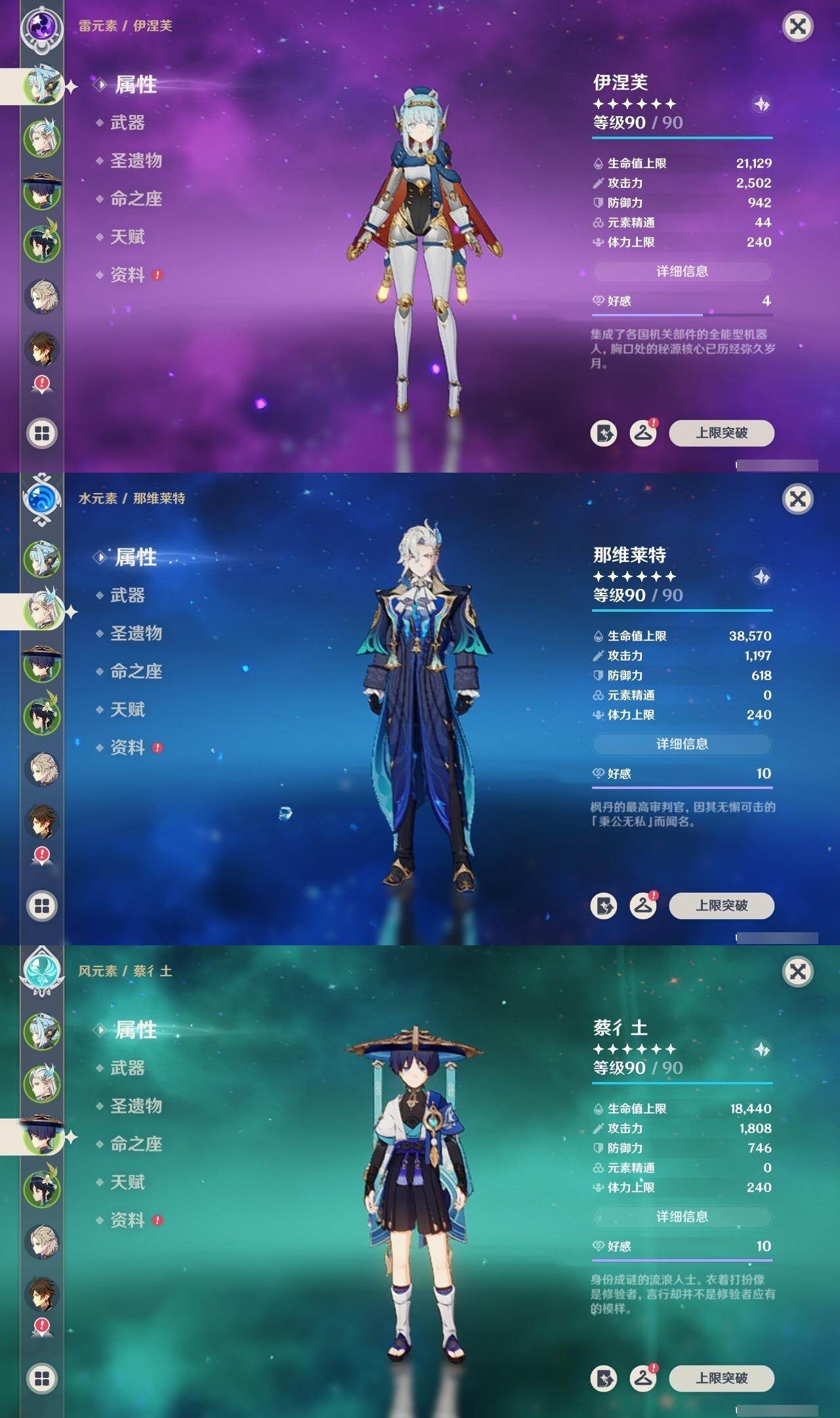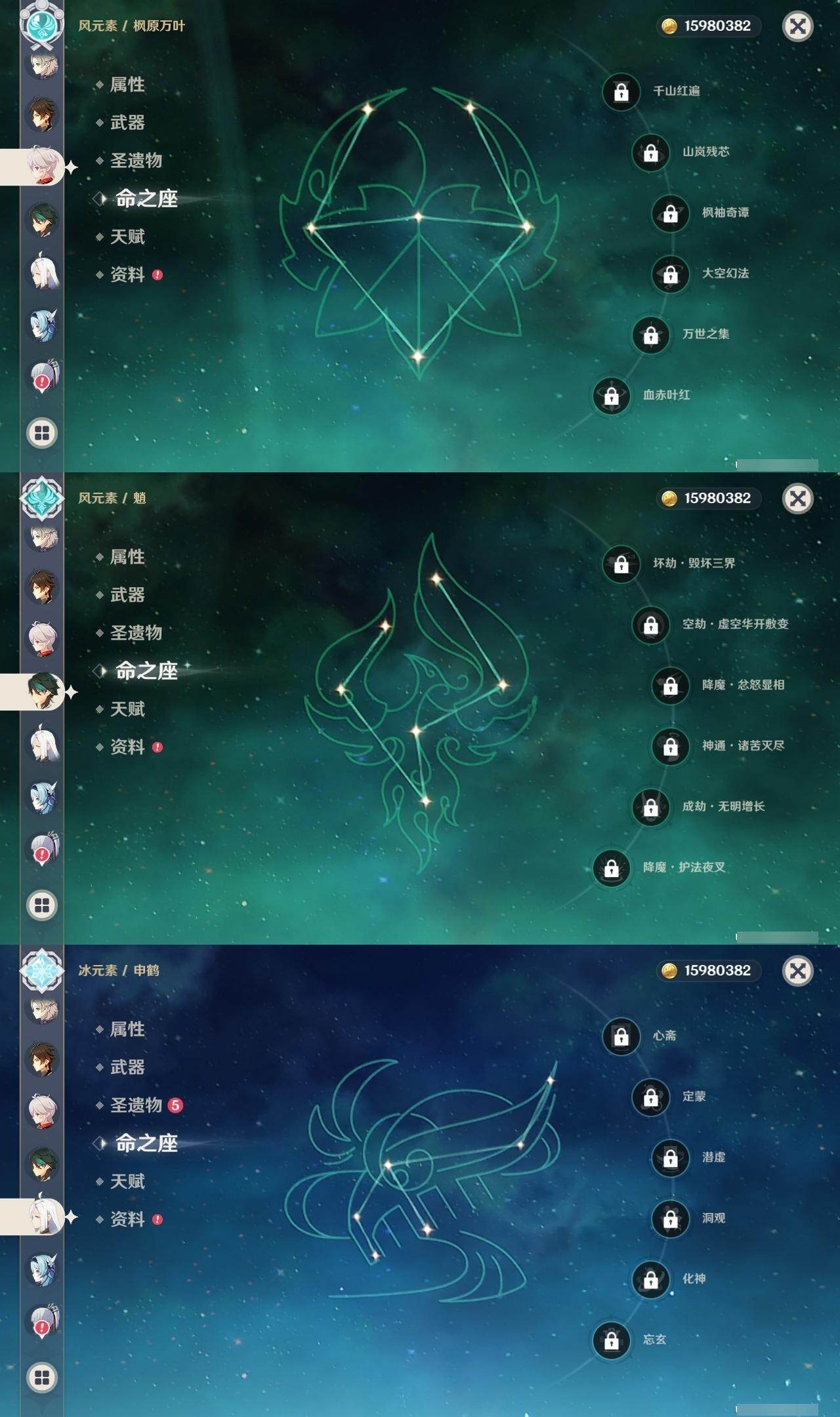 0命芙宁娜,4命那维莱特,0命迪希雅,0命流浪者,2命提纳里,0命夜兰,0命八重神子,0命申鹤,0命优菈,3命雷电将军,0命枫原万叶,0命神里绫华,0命钟离,0命胡桃,0命魈,0命宵宫,0命温迪,0命可莉,0命阿贝多,1命刻晴,2命七七,3命琴,4命莫娜,1命迪卢克,1命梦见月瑞希,0命丝柯克,0命伊涅芙,0命菲林斯,0命杜林,精1万世流涌大典,精1碧落之珑,精1千夜浮梦,精1波乱月白经津,精1神乐之真意,精2息灾,精1薙草之稻光,精1雾切之回光,精1苍古自由之誓,精1护摩之杖,精1四风原典,精1天空之脊,精1天空之翼,精1天空之刃,精1天空之卷