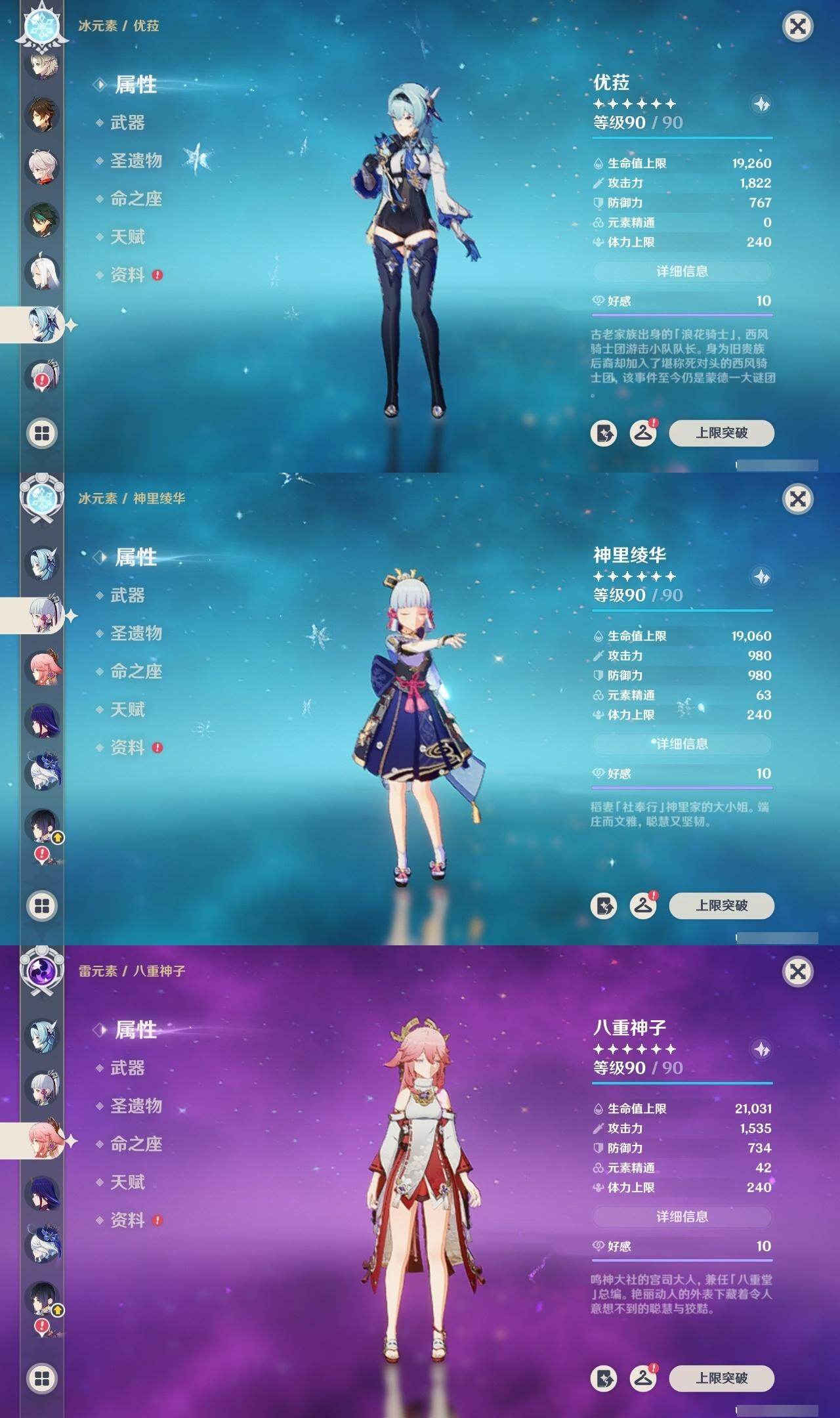 温迪,阿贝多,钟离,枫原万叶,魈,申鹤,优菈,神里凌华,八重神子,雷电将军,宵宫,胡桃,可莉,莫娜,琴,七七,刻晴,迪卢克