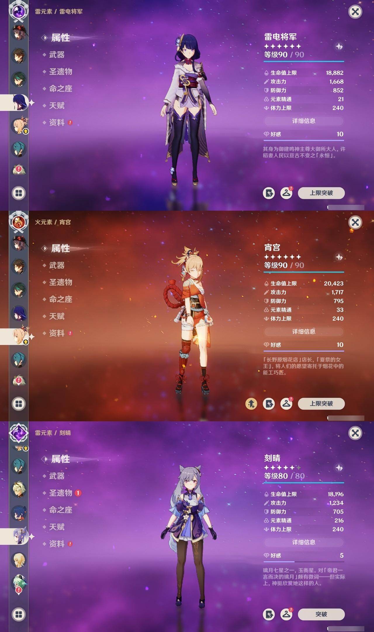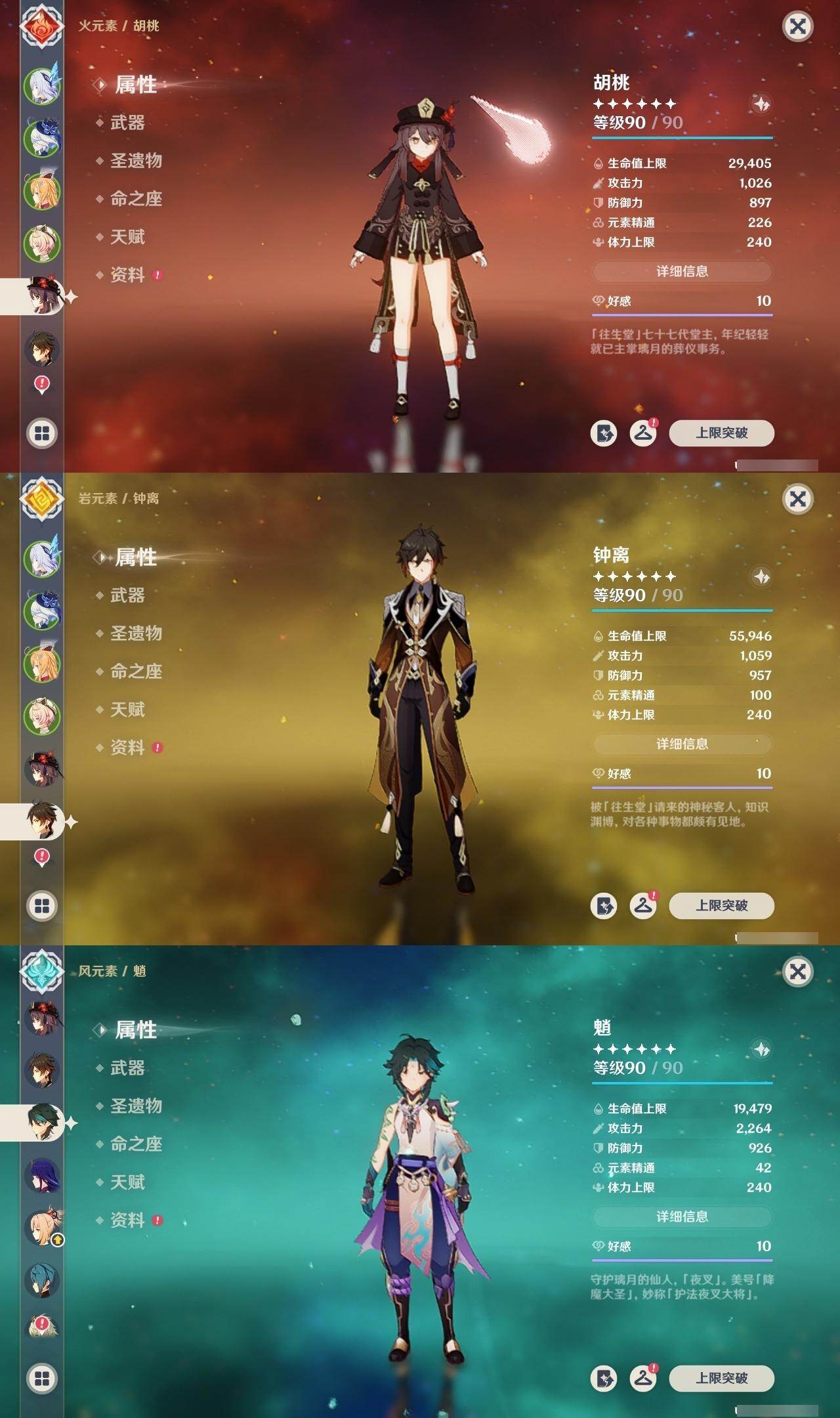 胡桃,钟离,魈,雷电将军,宵宫,刻晴,七七,莫娜,优菈,迪卢克