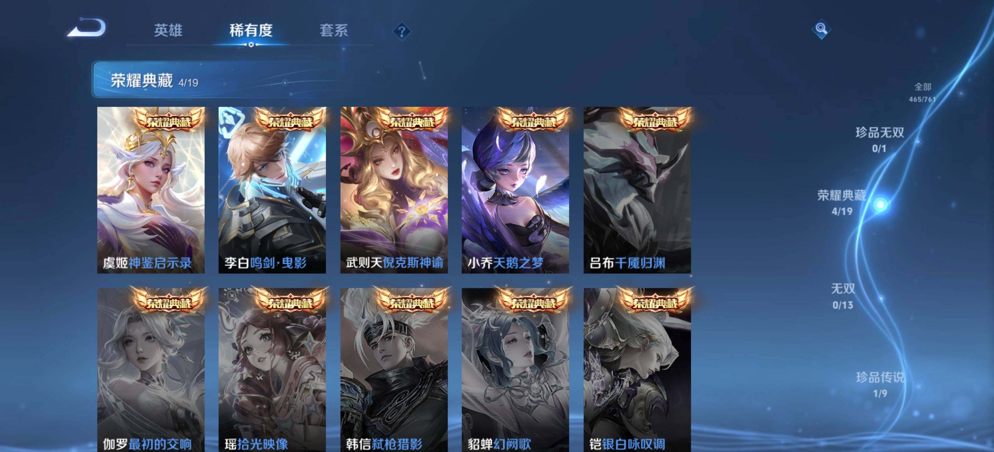 【荣耀典藏】:武则天英雄,武则天倪克斯神谕,小乔天鹅之梦,李白鸣剑曳影,虞姬神鉴启示录