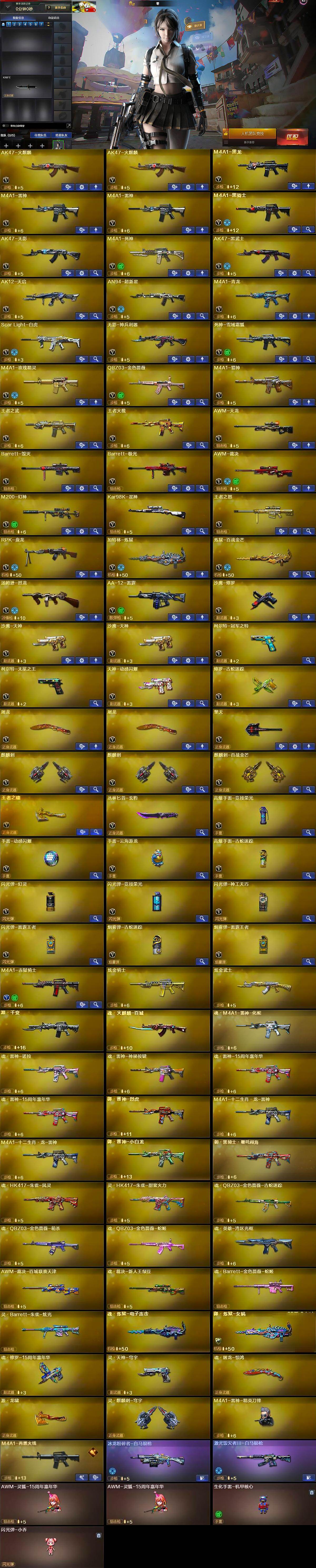 【英雄级武器】:AK47-火麒麟*2,M4A1-黑龙,M4A1-雷神*2,M4A1-黑骑士,AK47-无影,M4A1-死神,AK47-黑武士,AK12-天启,AN94-超新星,M4A1-青龙,Scar Light-白虎,无影-神兵利器,死神-雪域霜狐,