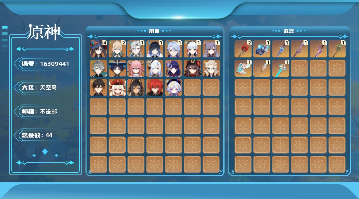 [16309441]56级/44黄/女主/19个五星角色/13个五星武器
