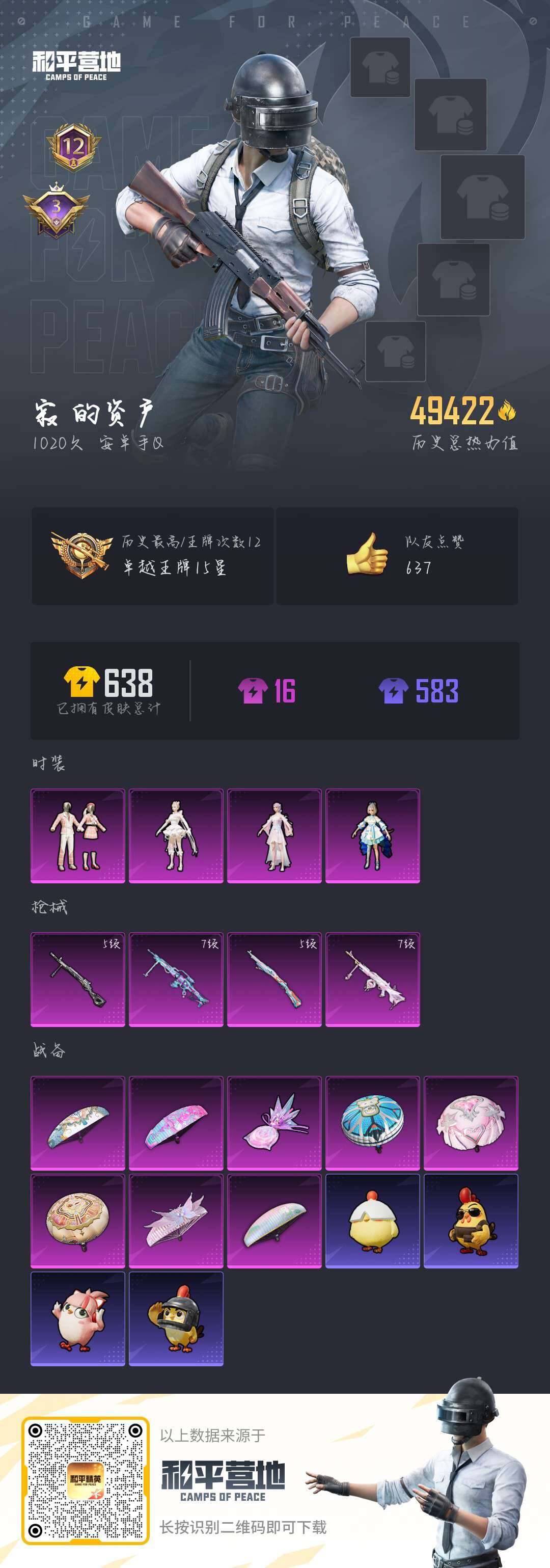 - [12904390]【1451】苹果 手Q-9粉装-8特效枪-0载具-4粉色飞行器-63652热力值-13王牌印记-171套装-196枪皮 【热门品类】:套装-浪漫天命,套装-都市猎人,套装-奇异狩猎者,套装-龟仙人,套装-暗影哥特,角色-8号机,角色-Mark.06 【粉色套装】:角色-洛天依,粉装-赤焰黑爵,粉装-瑰丽时代,角色-呆萌星弥,角色-圣堂之誓,角色-金域紫灵,粉装-未来领航者,角色-信仰神谕,角色-萨利娅 【粉色枪皮等级】:AKM-绿萝繁花(五级),SCAR-L-锦绣绵绵(五级),M416-电玩时刻(五级),GROZA-镜光银凌(五级),UMP45-量子极限(五级),Kar98K-巳巳如意(五级),DP-28-豹影疾电(五级),MG3-洛神天依(七级) 【粉色枪皮】:AKM-绿萝繁花,SCAR-L-锦绣绵绵,M416-电玩时刻,GROZA-镜光银凌,UMP45-量子极限,Kar98K-巳巳如意,DP-28-豹影疾电,MG3-洛神天依 【粉色飞行器】:梦幻火箭飞行器,星夜魔法师飞行翼,信仰神谕飞行器,万象金身飞行器 【粉色降落伞】:洛神天依降落伞,暗星紫秘降落伞,冷魅冰骑降落伞,星夜魔法师降落伞,垂柳戏鸭降落伞,彩虹甜喵降落伞,第五大道降落伞,白勺歌姬降落伞,未来歌姬降落伞,炫光之旅降落伞,镜光幻境降落伞,守护天翼降落伞,初号机 觉醒Ver.降落伞,拳皇·狂花道降落伞,未来领航者降落伞,临安公主降落伞,信仰神谕降落伞,月影灵韵降落伞,幻影飞狐降落伞 【稀有套装】:套装-龟仙人,套装-巳巳如意,套装-雏菊兔兔,套装-萝兰蝴蝶,套装-小熊娃娃,套装-糖糖葫芦,套装-青团波波,套装-棉花软糖,角色-摩登魅猫,套装-净心行者,角色-许七安,套装-黑曜寓言,角色-光矢逐梦,套装-燕燕于飞,套装-鱼渊荷华,角色-糖霜甜心 【稀有枪皮】:AKM-彩虹符号,AKM-影袭,AKM-灼热熔岩,AKM-生命誓言,AKM-破晓战魂,AKM-虎虎生威,AKM-霓虹街区,AKM-龙的传人,M16A4-幻世战舞者,M16A4-红色方程式,M16A4-蓝色火焰,SCAR-L-夜灯,SCAR-L-玉兔迎春,SCAR-L-红色方程式,SCAR-L-净心行者,M416-糯团青竹,M416-红色方程式,M416-绯红前夜,M416-蓝色火焰,GROZA-影袭,GROZA-恐龙拽拽,GROZA-懵萌河马,GRO