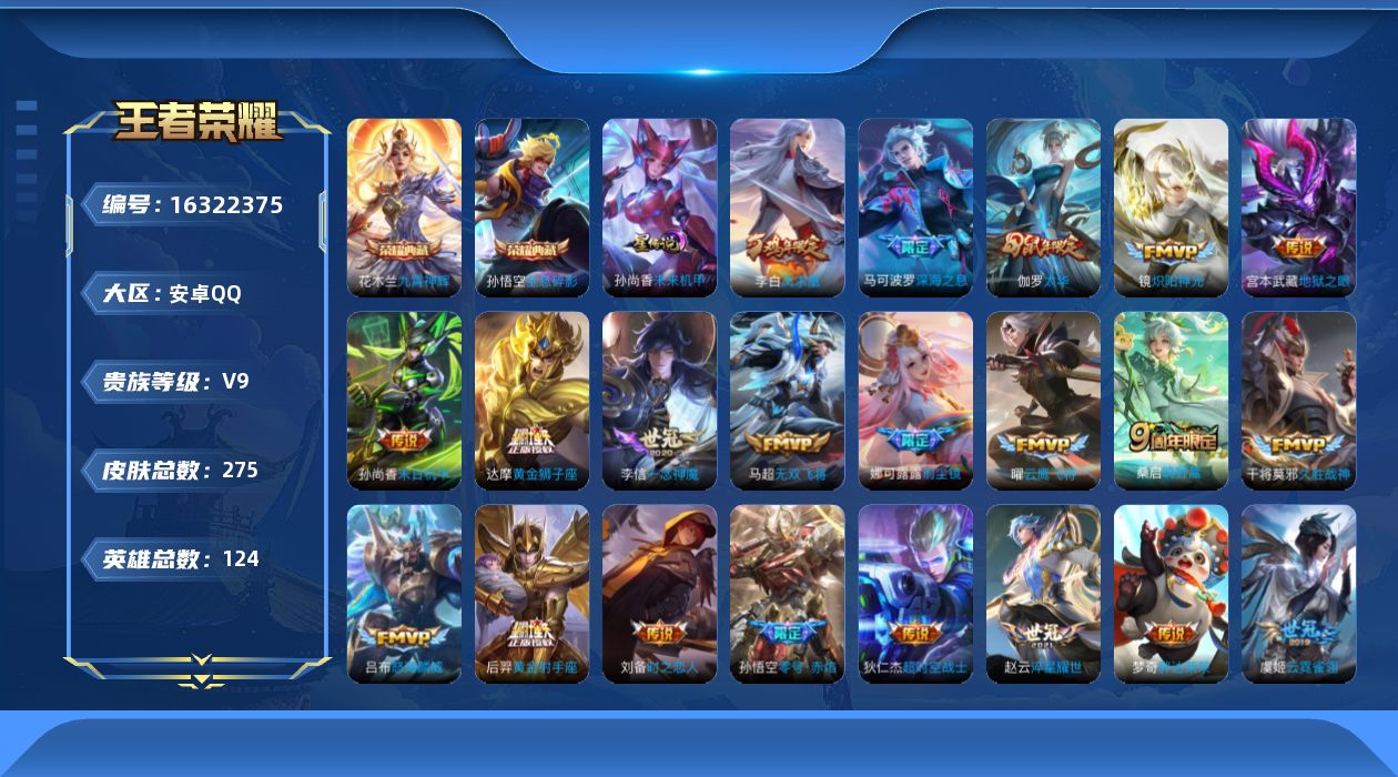 [16322375]安卓Q-V9-275皮肤-2典藏-25传说-79史诗