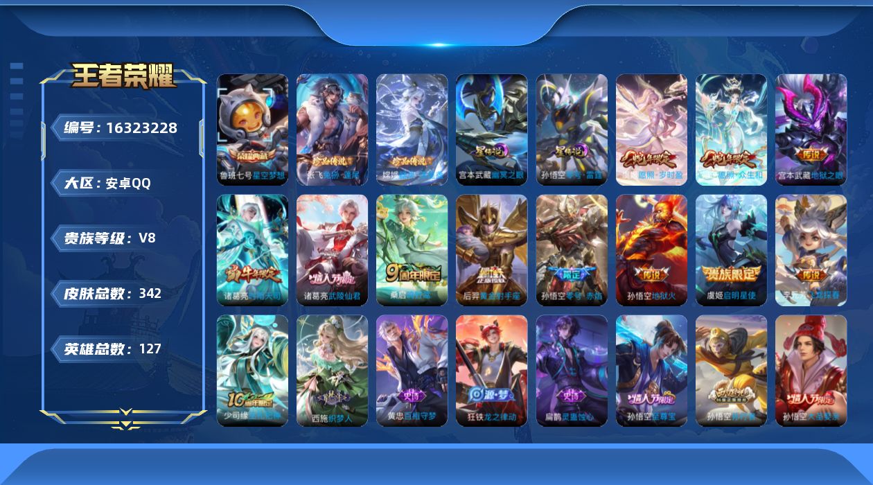 [16323228]按键9积分夺宝278 安卓Q-V8-342皮肤-1典藏皮肤-2珍品传说-12传说-96史诗