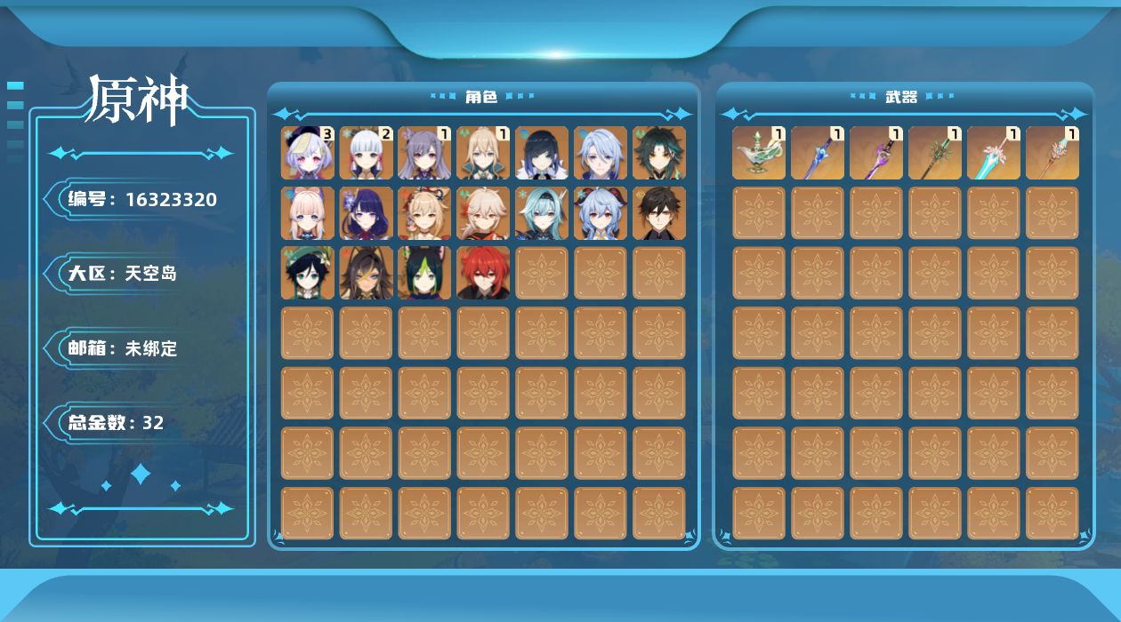 [16323320]57级/32黄/男主/18个五星角色/7个五星武器