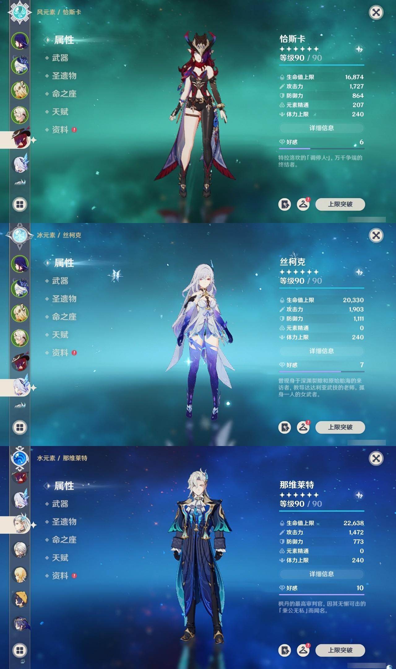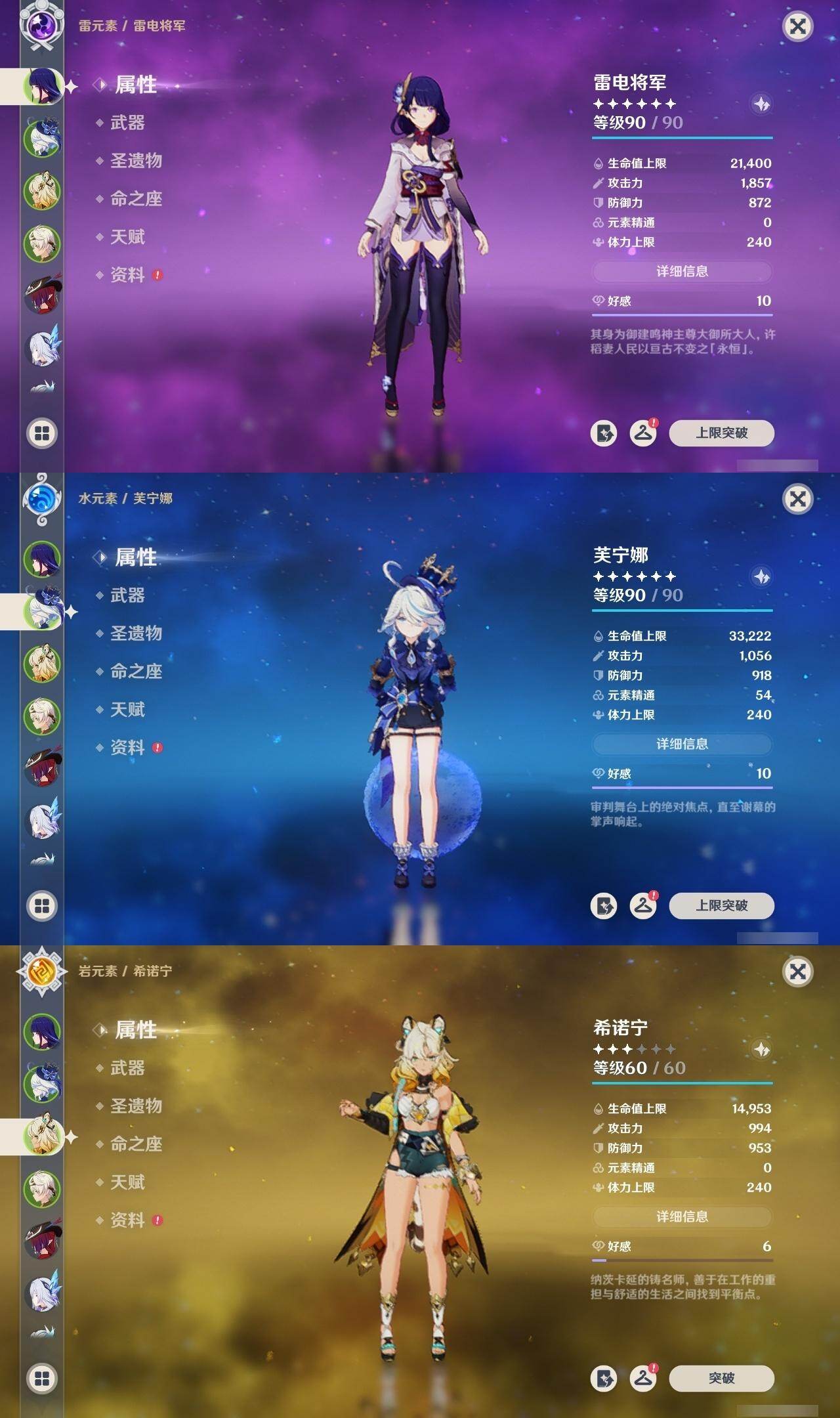 [16323847]57级/26黄/女主/13个五星角色/4个五星武器