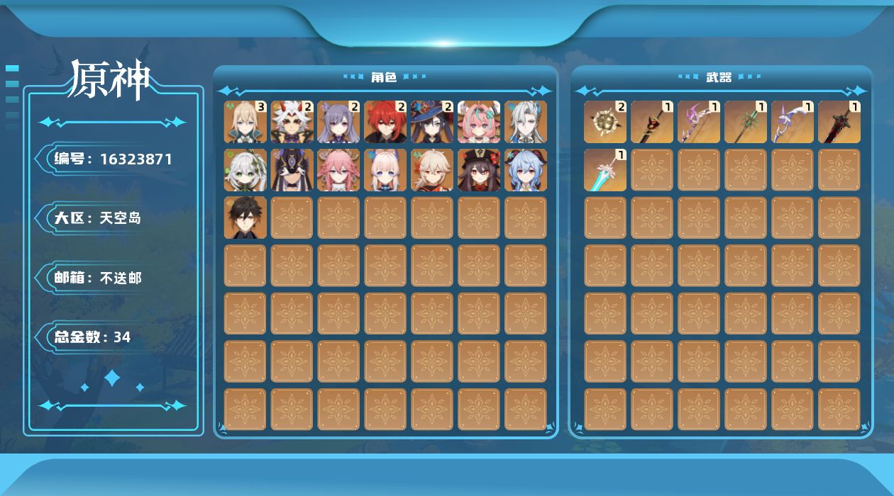 [16323871]57级/34黄/女主/15个五星角色/7个五星武器