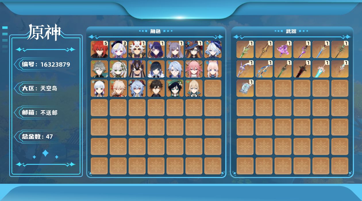 [16323879]60级/47黄/女主/20个五星角色/15个五星武器