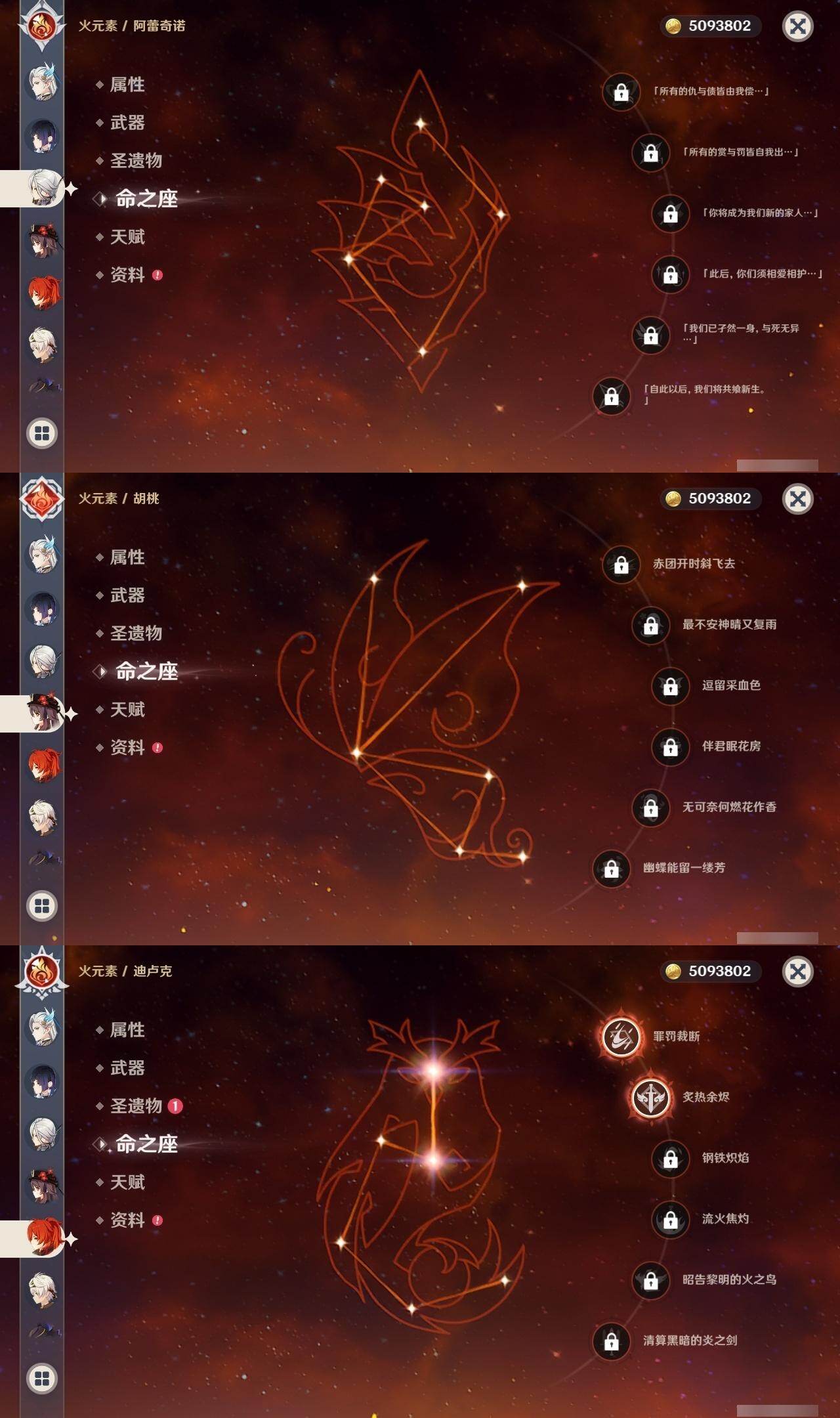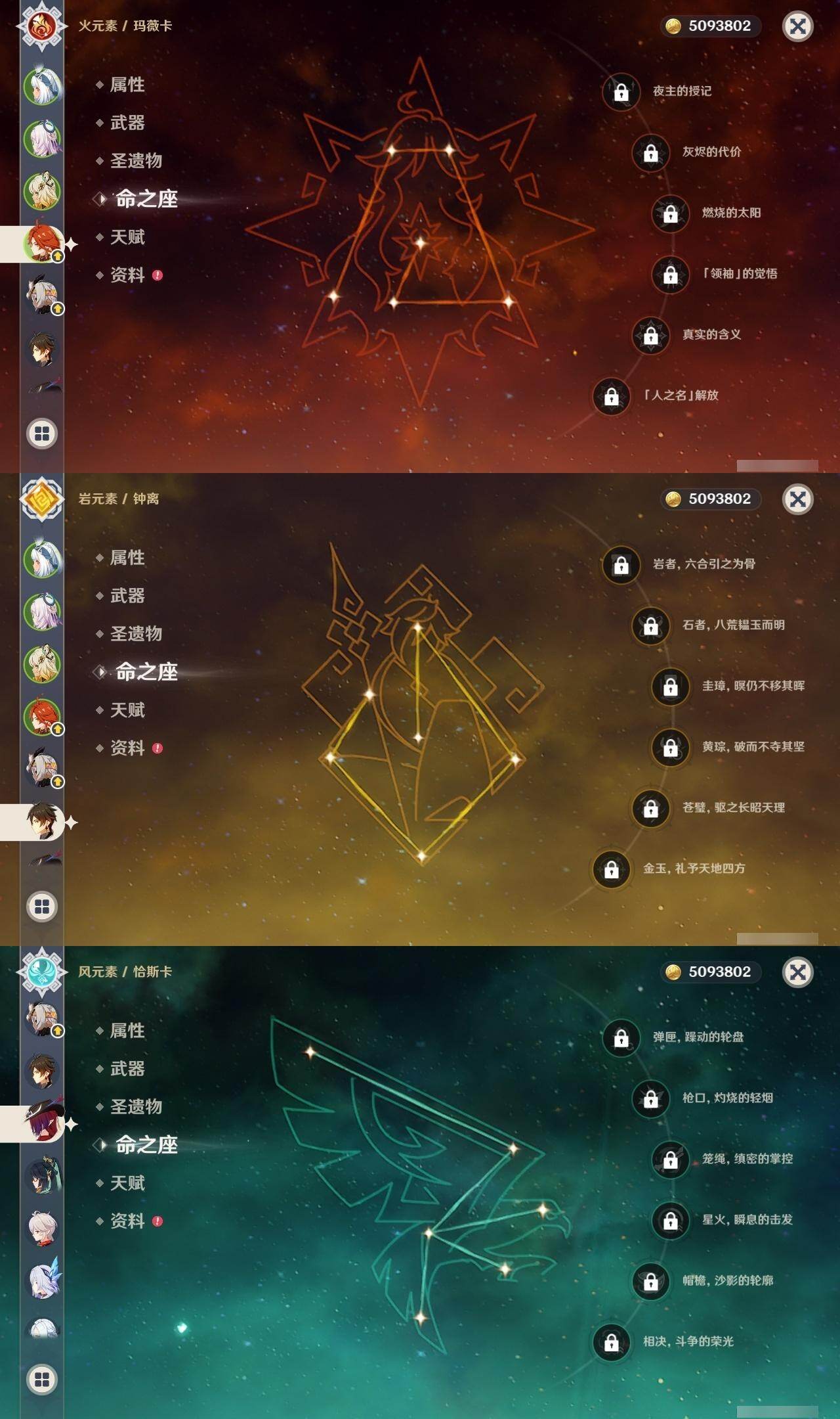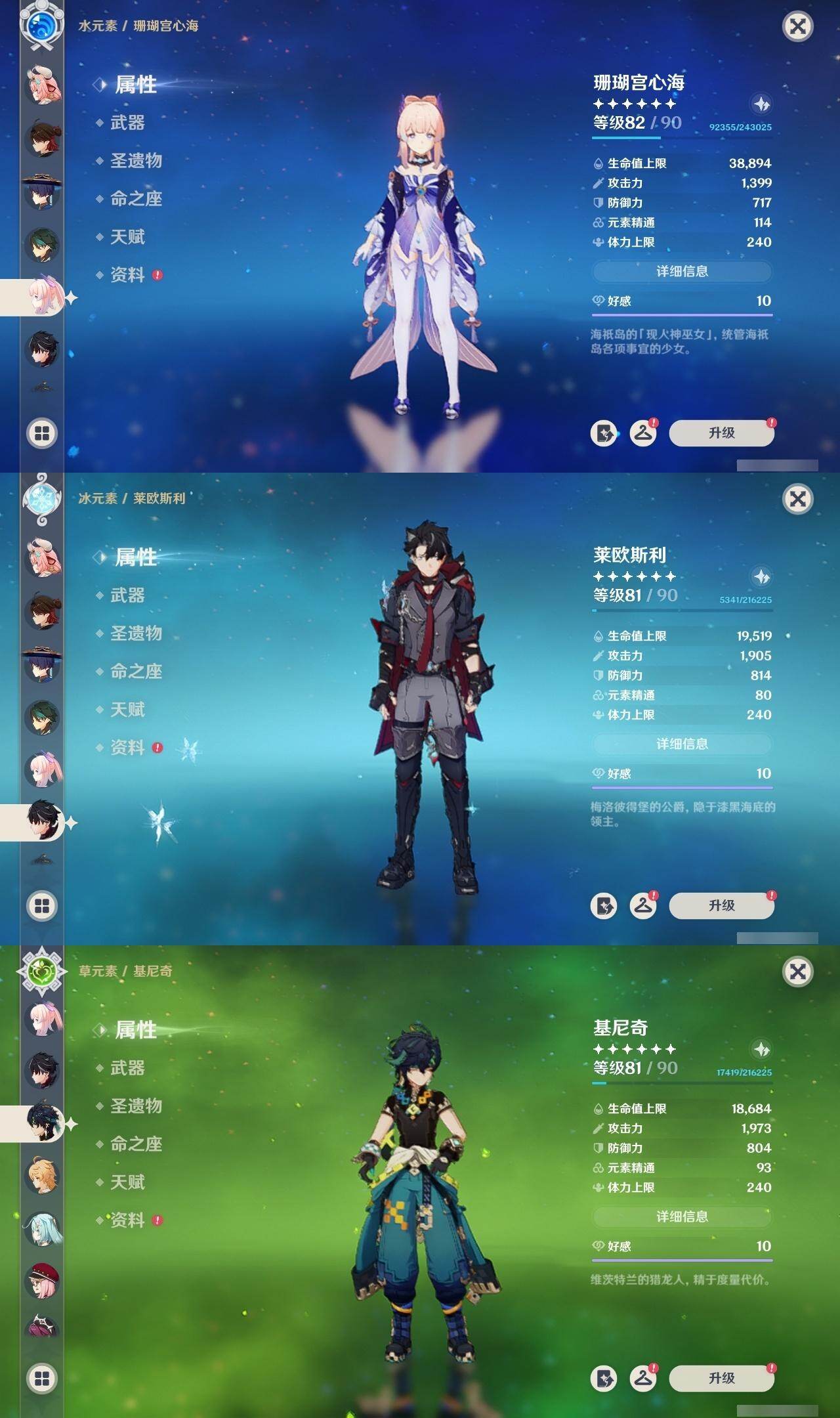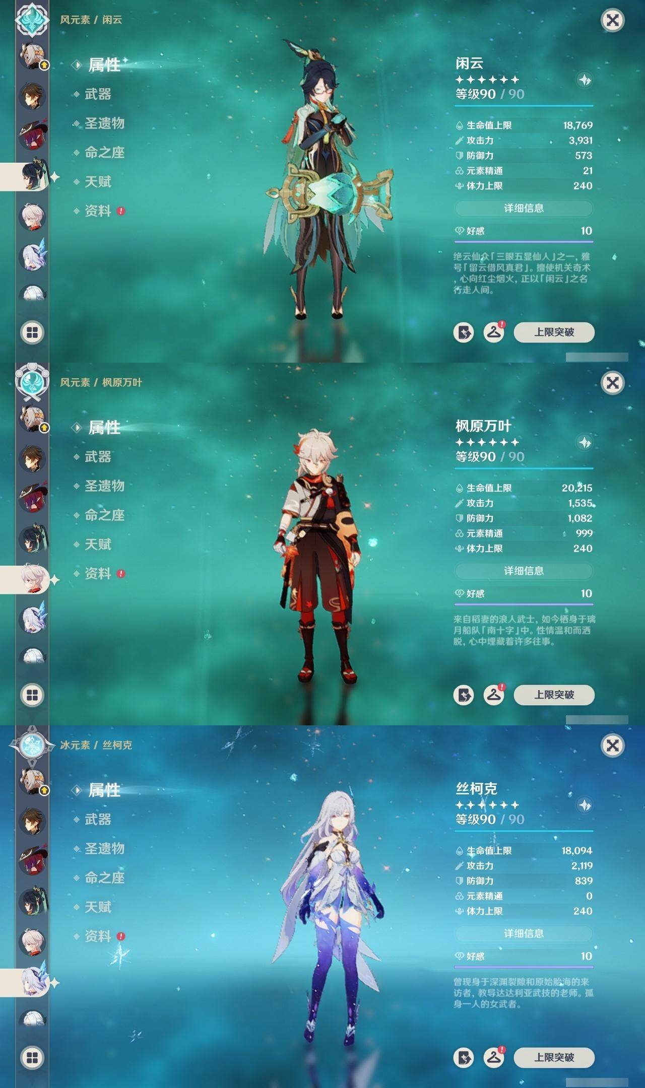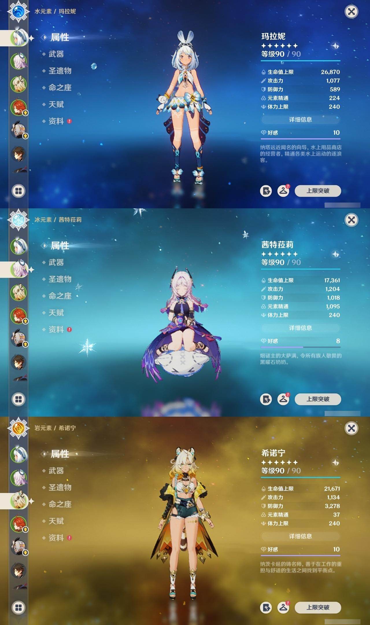 0命阿蕾奇诺,0命闲云,2命芙宁娜,0命莱欧斯利,1命那维莱特,1命迪希雅,0命流浪者,1命纳西妲,0命赛诺,满命提纳里,0命夜兰,0命申鹤,0命优菈,0命雷电将军,0命枫原万叶,0命神里绫华,0命钟离,0命胡桃,0命甘雨,0命魈,0命温迪,0命珊瑚宫心海,2命刻晴,1命七七,4命琴,2命莫娜,2命迪卢克,0命基尼奇,0命希诺宁,1命玛拉妮,0命恰斯卡,0命玛薇卡,0命茜特菈莉,0命梦见月瑞希,0命瓦雷莎,0命丝柯克,精1白雨心弦,精1鹤鸣余音,精1静水流涌之辉,精1万世流涌大典,精2最初的大魔术,精1图莱杜拉的回忆,精2赤沙之杖,精1圣显之钥,精1息灾,精1薙草之稻光,精1雾切之回光,精1苍古自由之誓,精3四风原典,精1和璞鸢,精1天空之翼,精1天空之卷,精1风鹰剑,精1天空之傲,精1冲浪时光,精1祭星者之望,精1苍耀