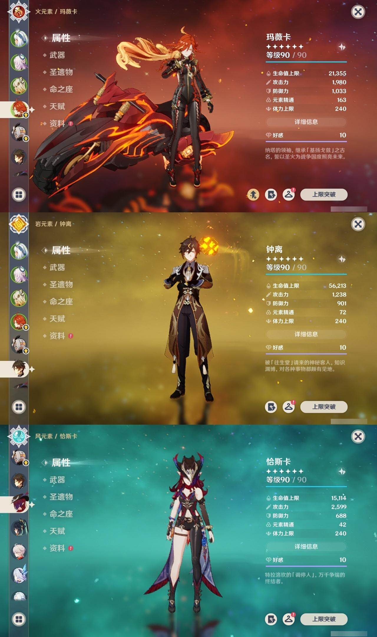钟离,枫原万叶,申鹤,优菈,甘雨,神里凌华,雷电将军,胡桃,迪卢克,温迪,魈,珊瑚宫心海,七七,莫娜,琴,刻晴