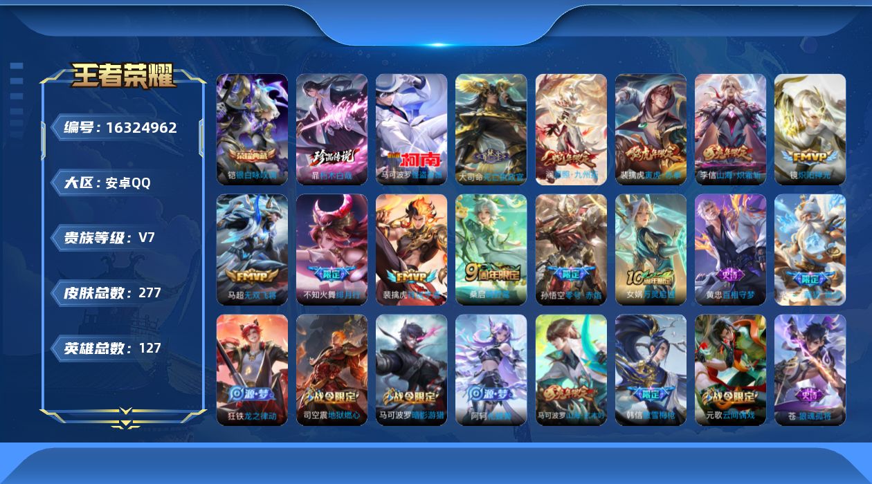 [16324962]安卓Q-277皮肤-1典藏皮肤-2珍品传说-10传说-79史诗