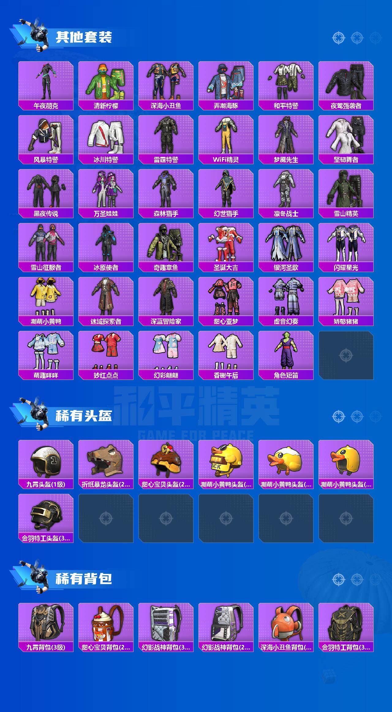 - [16333156]江苏一区-31V-0王者武器数-0炫金武器数 【角色】:炫,芳心审判者,风暴女,兰-海滩派对,零-水下丽影,灵狐-花神,灵狐者-X,玫瑰花神,游珑儿 【挑战大师】:激光毁灭者III-白马银枪 【英雄级武器】:M4A1-雷霆,COP-雷霆,屠龙,高爆手雷-雷霆*7,闪光弹-雷霆*8,烟雾弹-雷霆*7,烟雾弹-云龙,M4A1-赤狱骑士 【道具】:云山科技背包,亚洲杯纪念炫彩背包,冰冰企鹅背包,超级背包,绿色巨人,灵魂忍者,变异宝贝,迷雾幽灵,生化弹匣,夺命之镰,防化服*2,枪王排位28赛季金色流光,防弹头盔*2,防弹衣*2,C4工具钳*2,手雷包*2 【特殊枪械】:
