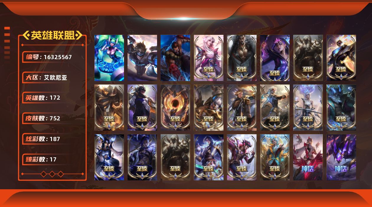 [16325567]【特价出售/店主推荐】未定级段位-172英雄-752皮肤-187炫彩-3终极-30神话-104限定-67传说-172史诗