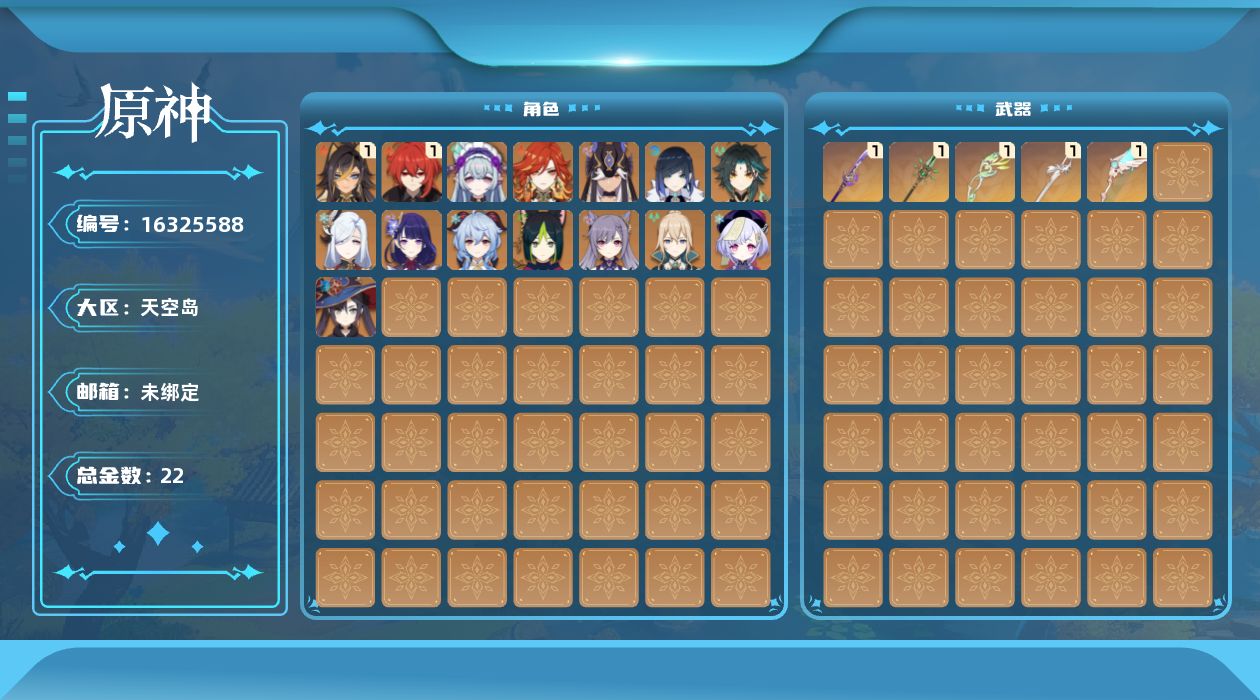 [16325588]57级/22黄/女主/15个五星角色/5个五星武器