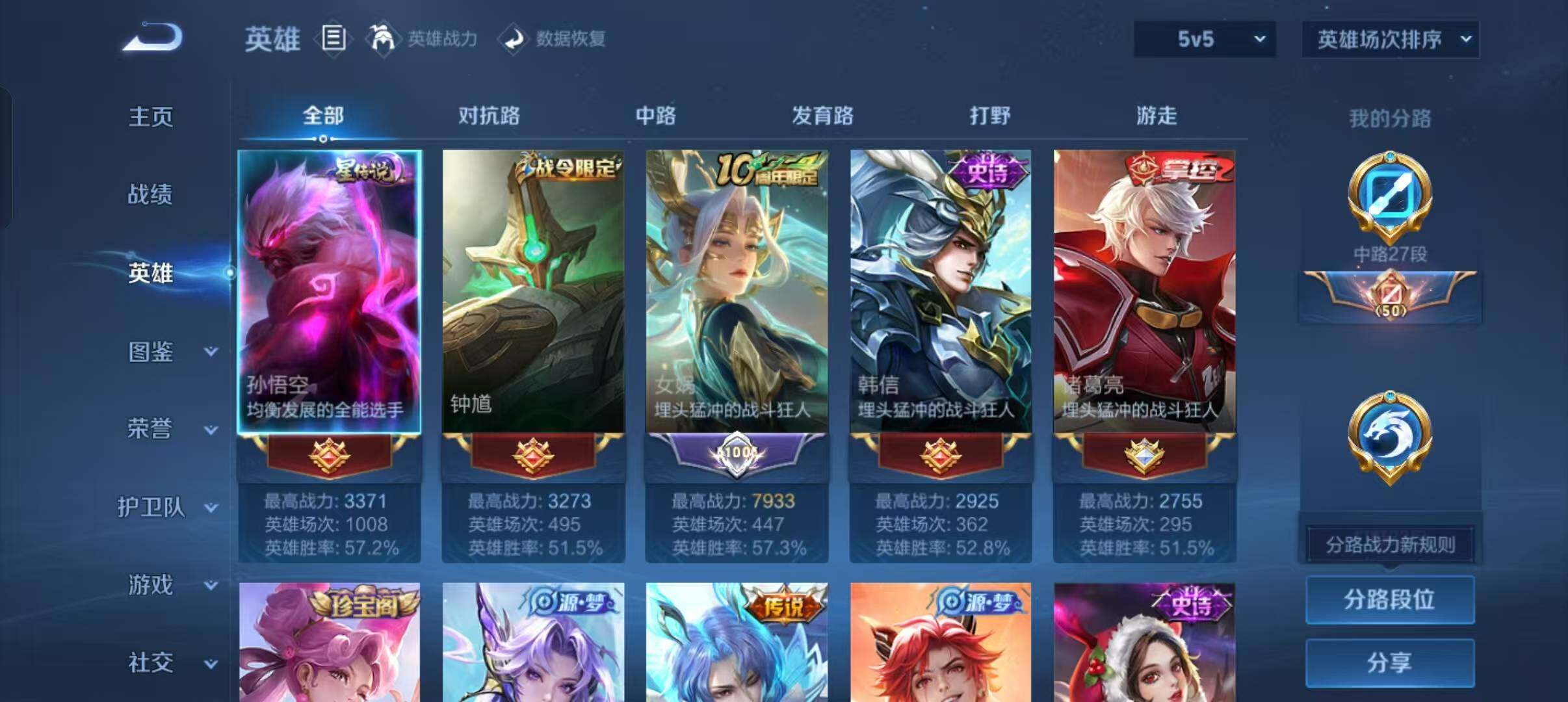- PX_2099117-实名: 可修改 贵族等级: V1 英雄数: 104 皮肤数: 77 限定皮: 五谷丰年,齐天大圣