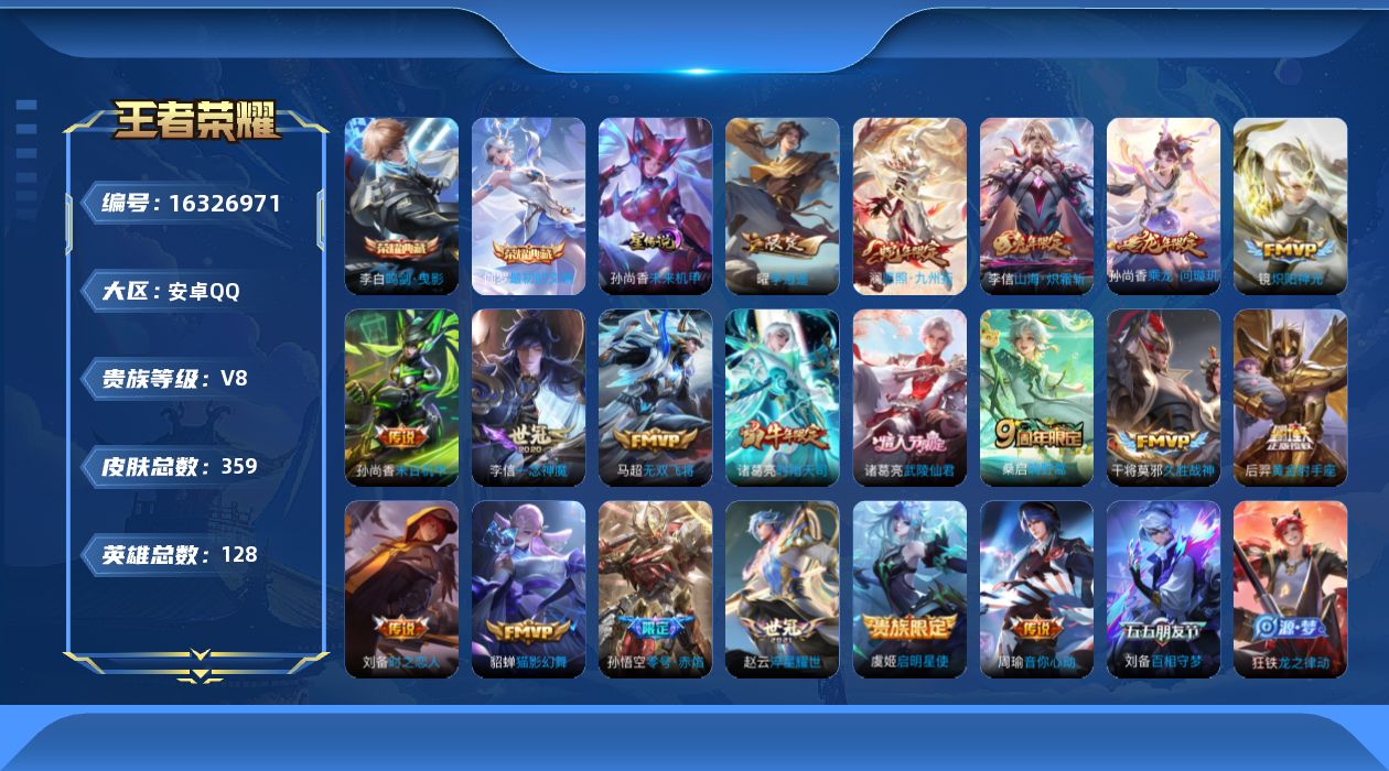 [16326971]安卓Q-V8,359皮肤-2典藏皮肤-19传说-112史诗
