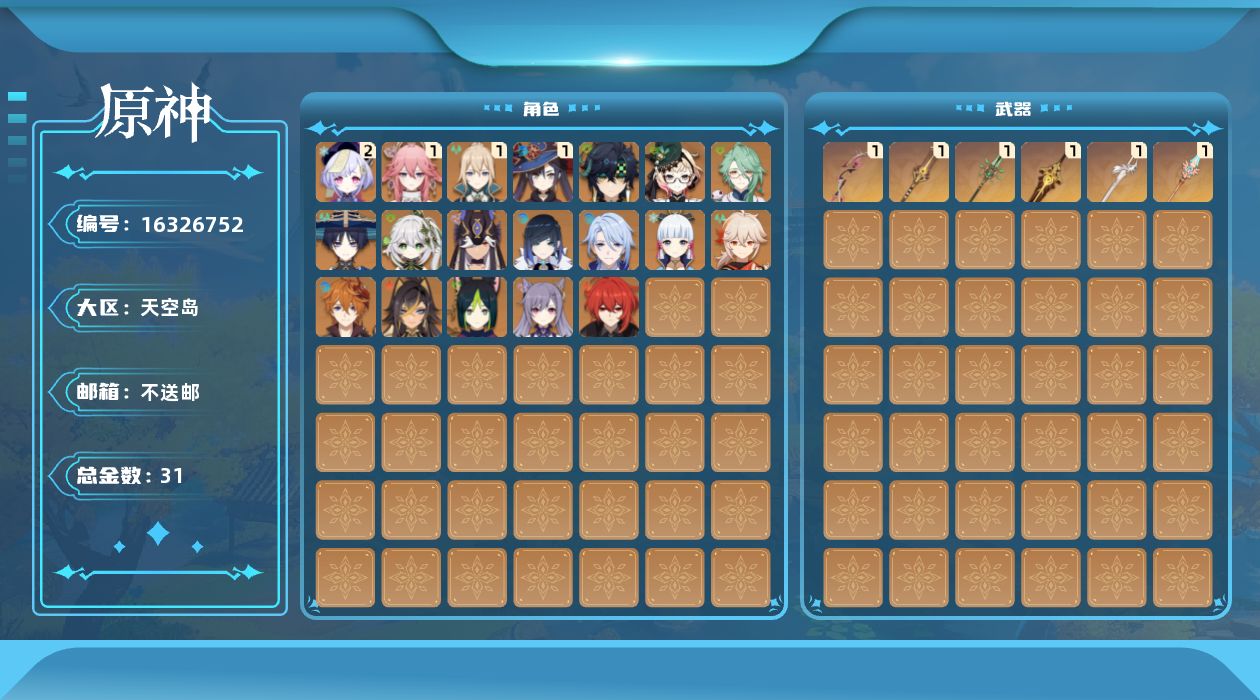 [16326752]59级/31黄/女主/19个五星角色/7个五星武器