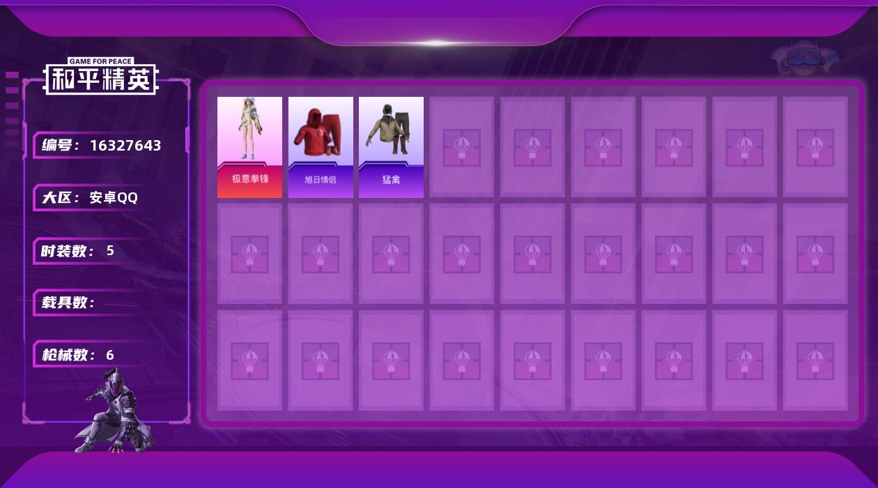 [16327643]【特价出售/店主推荐】安卓 手Q-1粉装-0特效枪-0载具-1粉色飞行器-2476热力值-2王牌印记-5套装-6枪皮