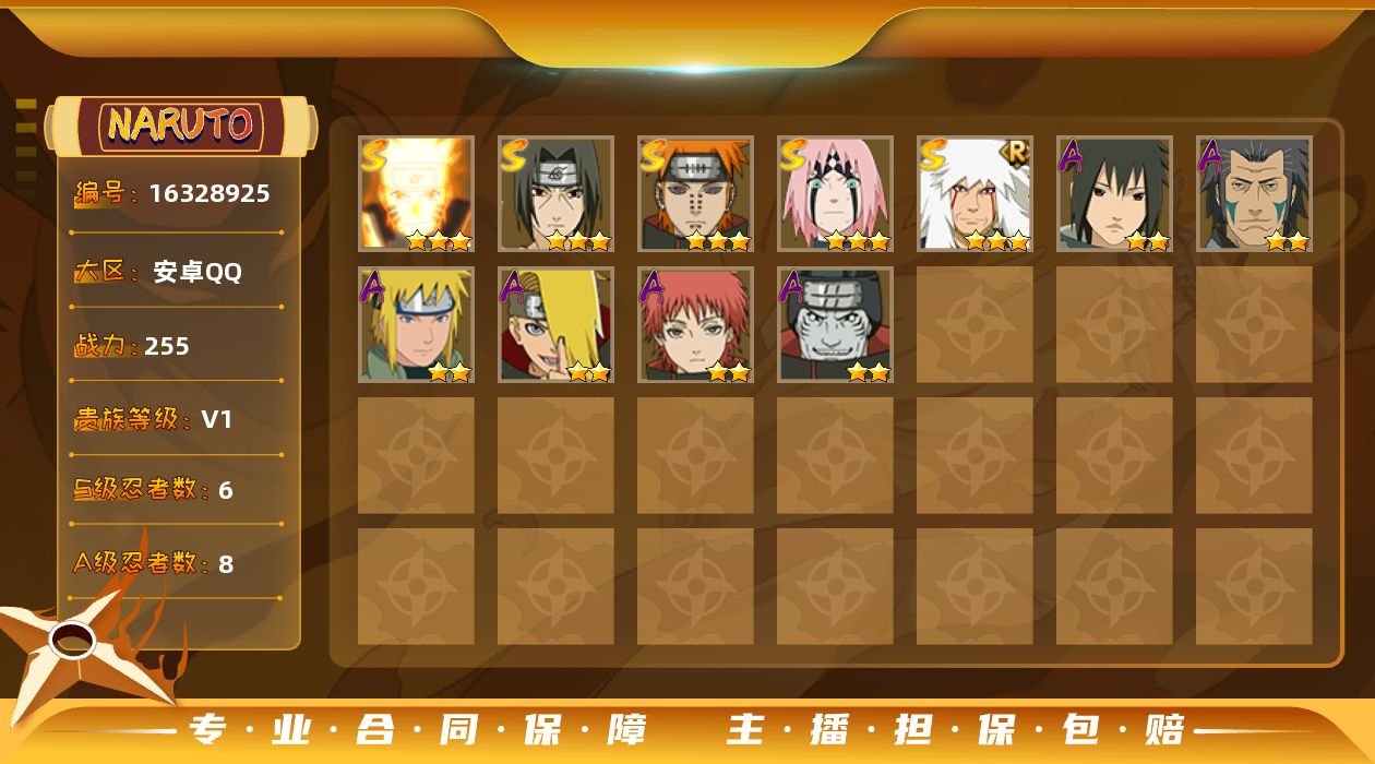 - 火影忍者手游/QQ/安卓QQ1-100区/1区宇智波佐助