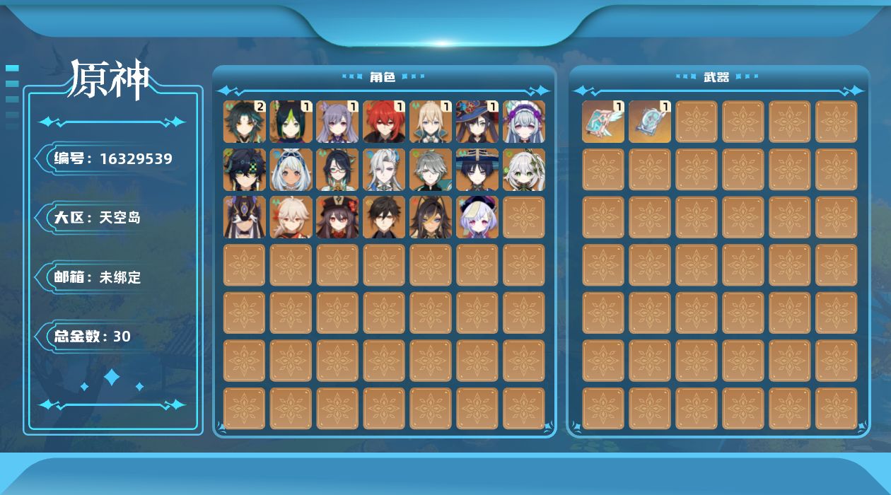 [16329539]59级/30黄/男主/21个五星角色/2个五星武器