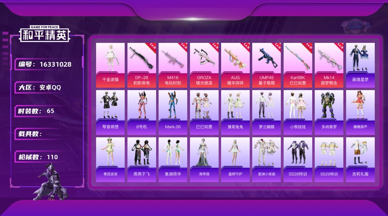 [16331028]【特价出售/店主推荐】安卓 手Q-1粉装-8特效枪-0载具-2粉色飞行器-31213热力值-7王牌印记-65套装-110枪皮