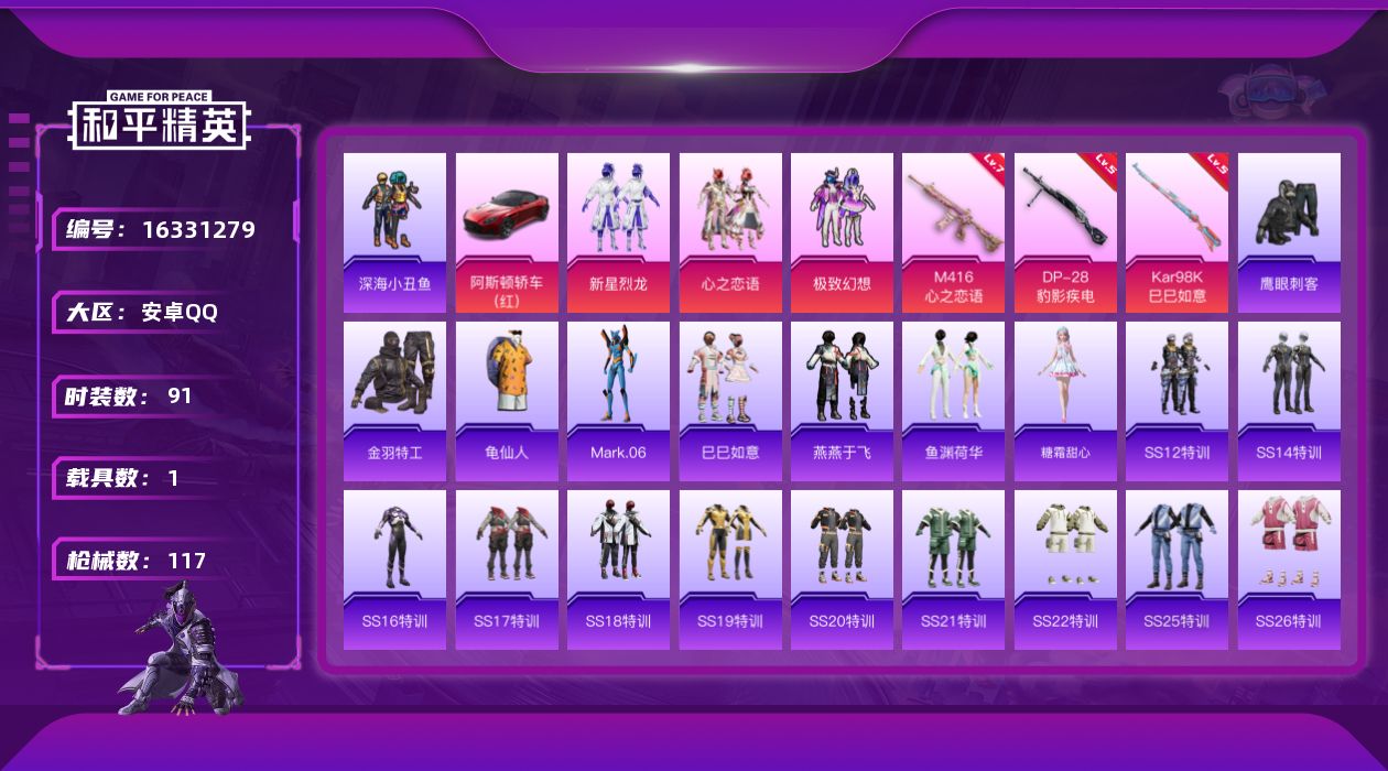 [16331279]【特价出售/店主推荐】安卓 手Q-3粉装-4特效枪-1载具-3.8w热力值-9王牌印记-91套装-117枪皮