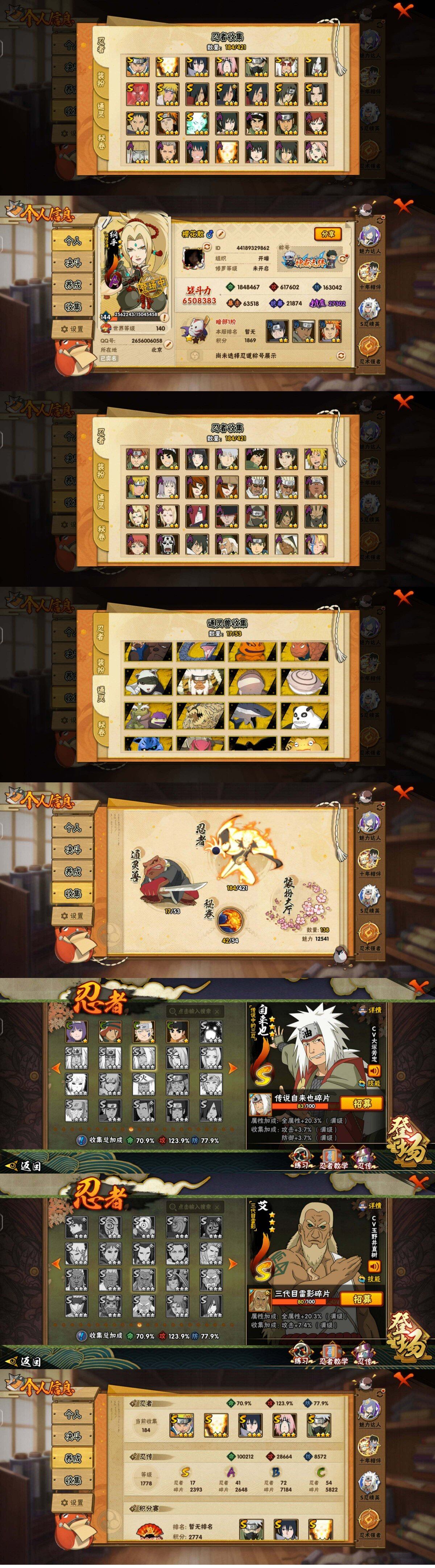 [16331845]17S级忍者数-41A级忍者数 【S级忍者】:宇智波鼬「秽土转生」(3星),宇智波斑「秽土转生」(3星),宇智波斑「秽土转生·解」(3星),春野樱「忍界大战」(3星),宇智波带土「忍界大战」(3星),宇智波鼬「须佐能乎」(3星),旗木卡卡西「须佐能乎」(3星),宇智波斑「木叶创立」(3星),自来也「舞之豪杰」(3星),大蛇丸(3星),波风水门(3星),漩涡鸣人「九喇嘛连结」(3星),迈特凯「死门」(3星),佩恩「天道」(3星),宇智波佐助「永恒万花筒」(3星),大筒木舍人「最终章」(3星),漩涡鸣人·宇智波佐助(3星) 【A级忍者】:艾「青年」(2星),长门「青年」(2星),波风水门「青年」(2星),波风水门「新春限定」(2星),达鲁伊「博人传」(2星),奇拉比(2星),奇拉比「忍界大战」(2星),飞段(3星),飞段「死司凭血」(2星),干柿鬼鲛(3星),漩涡博人「桃式显现」(2星),漩涡鸣人「九尾查克拉」(2星),迈特凯(3星),旗木卡卡西「幻之真容」(2星),我爱罗「疾风传」(3星),蝎(2星),蝎「绯流琥」(2星),角都(2星),角都「秽土转生」(2星),猿飞阿斯玛(3星),宇智波止水「新春限定」(2星),宇智波佐助「须佐能乎」(3星),宇智波佐助「万花筒写轮眼」(2星),照美冥「侠隐江湖」(2星),照美冥「五代目水影」(2星),日向雏田「最终章」(2星),宇智波带土「暴怒」(2星),长十郎「六代目水影」(2星),纲手「侠隐江湖」(2星),神秘面具男「忍者之路」(2星),佩恩·六道「漂泊浪客」(2星),李洛克「忍界大战」(2星),猿飞木叶丸「博人传」(2星),黑土「博人传」(2星),春野樱「百豪」(2星),秋道丁次「忍界大战」(2星),千代「近松十人卫」(2星),宇智波泉奈(2星),大野木「侠隐江湖」(2星),纲手「妖怪奇谭」(2星),迈特凯「青春爆炸」(2星) 【通灵兽】:熊猫