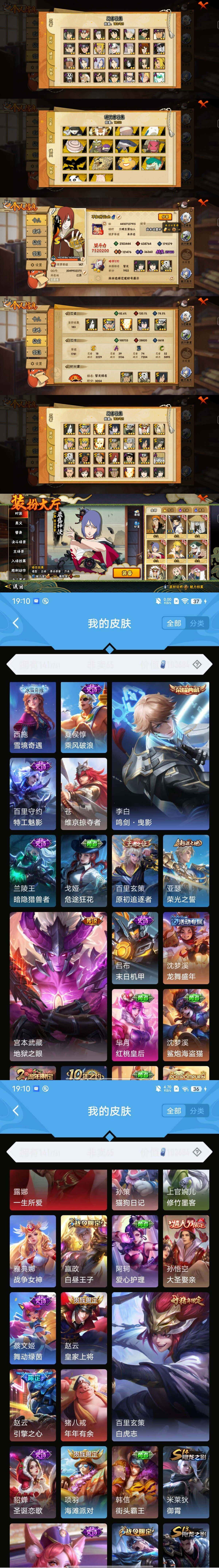 - [12949658]安卓WX-V5-至尊星耀II段位-127英雄-215皮肤-0典藏-0珍品无双-0无双-0珍品传说-0传说-55史诗 【荣耀典藏】:武则天英雄 【限定皮肤】:蒙犽顽岩魄,蔡文姬夏日便利店,虞姬夏日便利店,姜子牙天穹之誓,杨戬破阵退雄兵,狄仁杰阴阳师,赵云皇家上将,嬴政优雅恋人,孙尚香蔷薇恋人,庄周高山流水,吕布猎兽之王,夏侯惇朔风刀,甄姬游园惊梦,典韦穷奇,狄仁杰万华元夜,项羽海滩派对,老夫子醍醐杖,程咬金演武夺筹,兰陵王金庭之子,李元芳云中旅人,钟馗驱傩正仪,雅典娜黎明之约,鬼谷子原初探秘者,鬼谷子五谷丰年,苏烈千军破阵,百里玄策原初追逐者,弈星混沌棋,明世隐疑决卦,裴擒虎李小龙,狂铁御狮,米莱狄御霄,盾山御銮,上官婉儿梁祝,西施玲珑珍味,鲁班大师探海日志,桑启海盐诗旅,张良古海寻踪,高渐离燃音魔法,妲己灵卜魔法,鬼谷子天穹祈灯,沈梦溪龙舞盛年,鲁班七号蔬乡物语,李元芳蔬乡物语,刘邦剑破天穹,程咬金群星魔术团,镜青焰无极,项羽苍威无极,周瑜熔金海岸 【赛季限定】:夏侯惇朔风刀,典韦穷奇,狄仁杰万华元夜,老夫子醍醐杖,程咬金演武夺筹,兰陵王金庭之子,张良古海寻踪,李元芳云中旅人,钟馗驱傩正仪,雅典娜黎明之约,鬼谷子原初探秘者,苏烈千军破阵,百里玄策原初追逐者,弈星混沌棋,明世隐疑决卦,狂铁御狮,米莱狄御霄,盾山御銮,鲁班大师探海日志,桑启海盐诗旅,鬼谷子天穹祈灯,刘邦剑破天穹,姜子牙天穹之誓 【战令限定】:蔡文姬夏日便利店,虞姬夏日便利店,吕布猎兽之王,西施玲珑珍味,高渐离燃音魔法,妲己灵卜魔法,鲁班七号蔬乡物语,李元芳蔬乡物语,镜青焰无极,项羽苍威无极 【史诗皮肤】:露娜紫霞仙子,赵云皇家上将,赵云未来纪元,甄姬冰雪圆舞曲,王昭君偶像歌手,宫本武藏鬼剑武藏,孙尚香蔷薇恋人,孙尚香水果甜心,嬴政优雅恋人,嬴政暗夜贵公子,嬴政摇滚巨星,妲己魅力维加斯,墨子金属风暴,吕布圣诞狂欢,曹操幽灵船长,花木兰水晶猎龙者,刘邦德古拉伯爵,夏侯惇乘风破浪,小乔缤纷独角兽,兰陵王暗隐猎兽者,诸葛亮黄金分割率,甄姬游园惊梦,亚瑟心灵战警,安琪拉心灵骇客,百里守约特工魅影,铠曙光守护者,蔡文姬舞动绿茵,刘禅天才门将,李元芳逐浪之夏,程咬金功夫厨神,白起星夜王子,阿轲节奏热浪,孙策猫狗日记,伽罗箭羽风息,狄仁杰鹰眼统帅,上官婉儿梁祝,小乔青蛇,百里玄策原初追逐者,裴擒虎李小龙,庄周高山流水