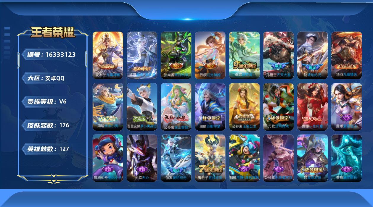 [16333123]安卓Q-V6-127英雄-176皮肤-1典藏皮肤-1珍品传说-6传说-52史诗