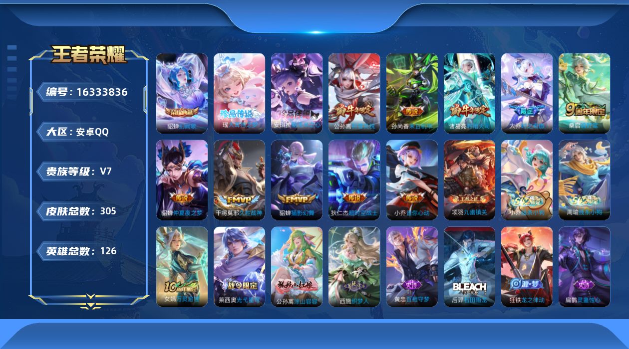 [16333836]安卓Q-V7-126英雄-305皮肤-1典藏皮肤-2珍品传说-10传说-91史诗