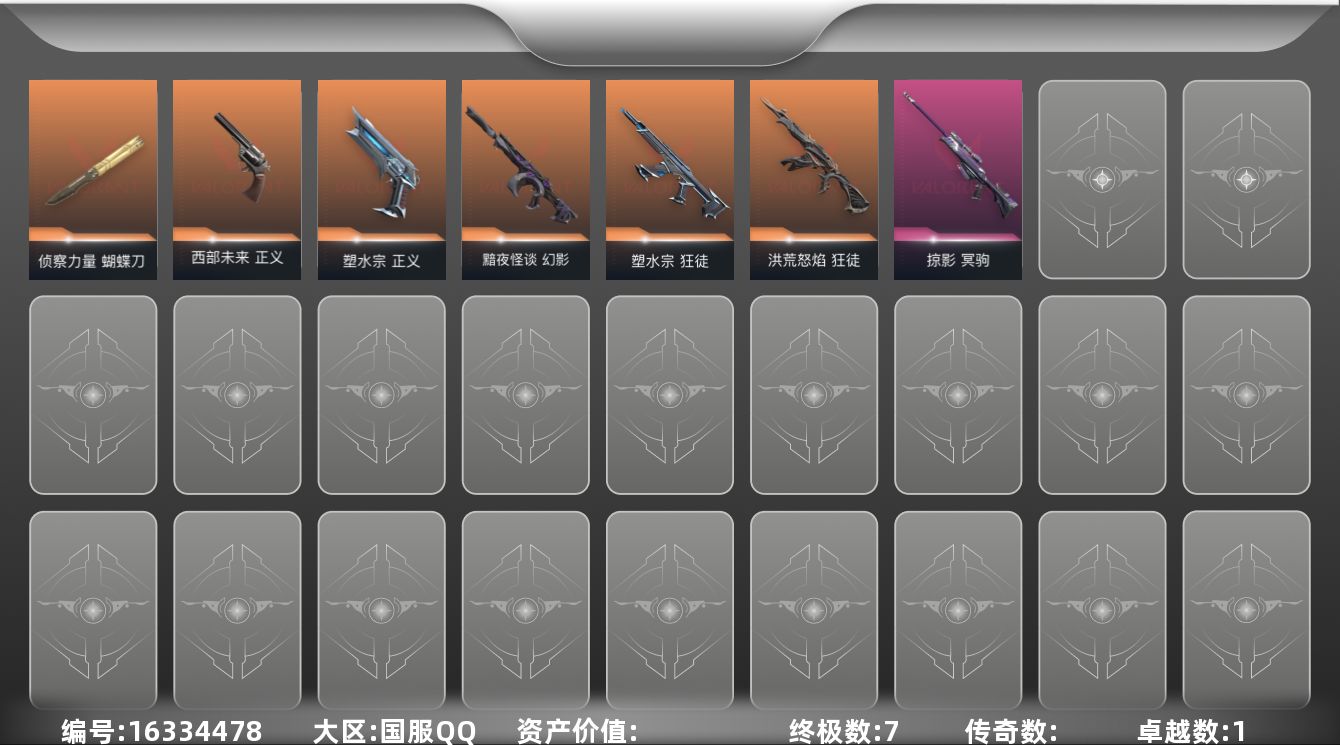 [16334478]【英雄】:炼狱,暮蝶,捷风,雷兹,幽影,不死鸟,贤者,猎枭,芮娜,尚勃勒,霓虹 【近战武器】:近战武器-侦察力量 蝴蝶刀 【狂徒】:狂徒-洪荒怒焰,狂徒-塑水宗 【幻影】:幻影-黯夜怪谈 【冥驹】:冥驹-掠影 【正义】:正义-塑水宗,正义-西部未来 【卡面】:正义的化身 卡面,梦幻奶茶 卡面,零点嗅探设计图 卡面,无畏契约GO!第一卷:芮娜 卡面,无畏契约GO!第一卷:零 卡面,代号红色 卡面,新兵报到 卡面,V契约 卡面,无畏契约 卡面 【喷漆】:记在小本本 喷漆,捷风差距 喷漆,买装还是存钱 喷漆,胜利属于无畏契约 喷漆,GLHF 喷漆,无畏契约 喷漆 【挂饰】:天外飞客 挂饰,无畏契约 纪念币 挂饰