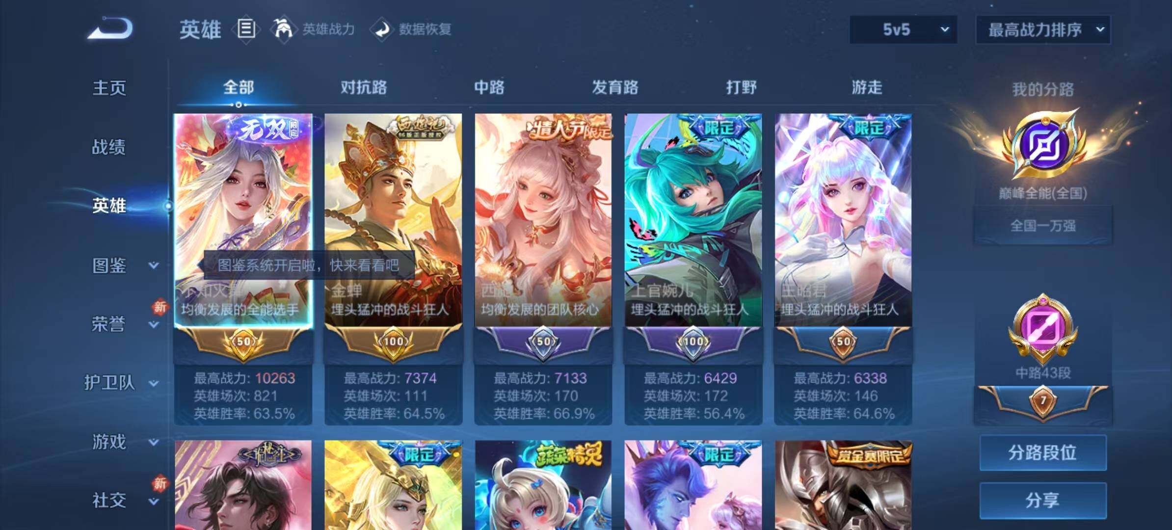 - [12989685]安卓Q-V8-最强王者段位-125英雄-288皮肤-1典藏-0珍品无双-0无双-0珍品传说-19传说-87史诗 【英雄全皮】:刘邦全皮,孙权全皮,鬼谷子全皮 【荣耀典藏】:韩信弑枪猎影 【传说皮肤】:西施续相思,虞姬愿照岁时盈,桑启鸣野蒿,伽罗炽翼辉光,孙悟空齐天大圣,不知火舞绯月行,王昭君星穹之声,马超无双飞将,孙尚香异界灵契,虞姬启明星使,曜云鹰飞将,李信一念神魔,貂蝉猫影幻舞,干将莫邪久胜战神,梦奇胖达荣荣,后羿黄金射手座,诸葛亮武陵仙君,孙尚香末日机甲,宫本武藏地狱之眼 【限定皮肤】:姜子牙天穹之誓,狄仁杰阴阳师,赵云皇家上将,赵云引擎之心,赵云百木心枪,墨子神迹守卫,孙尚香蔷薇恋人,孙尚香异界灵契,阿轲迷踪丽影,钟无艳超时空战士,芈月幻夜卜梦,元歌无心,甄姬落雪兰心,马可波罗暗影游猎,马可波罗山海玄木吟,狄仁杰魔术师,狄仁杰万华元夜,达摩星际陆战队,达摩沙漠行僧,项羽海滩派对,老夫子醍醐杖,老夫子航海奇遇记,程咬金演武夺筹,露娜一生所爱,刘邦夺宝奇兵,王昭君午后时光,王昭君星穹之声,兰陵王金庭之子,花木兰青春决赛季,不知火舞绯月行,孙悟空至尊宝,孙悟空大圣娶亲,孙悟空齐天大圣,后羿圣弓游侠,李元芳云中旅人,虞姬启明星使,钟馗驱傩正仪,杨玉环遇见飞天,干将莫邪胡桃夹子,鬼谷子原初探秘者,鬼谷子五谷丰年,诸葛亮武陵仙君,黄忠火炮绅士,铠青龙志,苏烈千军破阵,百里玄策原初追逐者,梦奇顽趣,沈梦溪大漠名商,明世隐疑决卦,裴擒虎天狼狩猎者,裴擒虎李小龙,裴擒虎擒涛扼浪,狂铁电玩高手,云中君纤云弄巧,伽罗天狼溯光者,伽罗炽翼辉光,上官婉儿梁祝,嫦娥暖冬兔眠,鲁班大师探海日志,桑启海盐诗旅,暃星界游侠,阿古朵江河有灵,张良古海寻踪,蒙恬荣光圣徽,高渐离燃音魔法,妲己灵卜魔法,鬼谷子天穹祈灯,伽罗琥珀纪元,沈梦溪龙舞盛年,鲁班七号蔬乡物语,李元芳蔬乡物语,刘邦剑破天穹,程咬金群星魔术团,周瑜熔金海岸 【年限皮肤】:铠青龙志,马可波罗山海玄木吟,伽罗炽翼辉光 【赛季限定】:狄仁杰万华元夜,达摩沙漠行僧,老夫子醍醐杖,程咬金演武夺筹,兰陵王金庭之子,张良古海寻踪,李元芳云中旅人,钟馗驱傩正仪,鬼谷子原初探秘者,苏烈千军破阵,百里玄策原初追逐者,梦奇顽趣,沈梦溪大漠名商,明世隐疑决卦,裴擒虎擒涛扼浪,鲁班大师探海日志,桑启海盐诗旅,鬼谷子天穹祈灯,蒙恬荣光圣徽,刘邦剑破天穹,