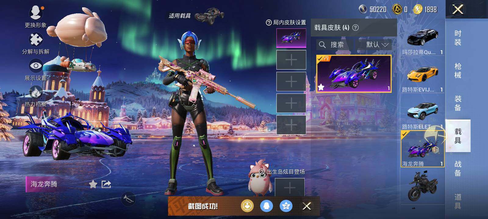 【粉色载具】:路特斯EVIJA(星际黄),路特斯ELETRE(冰川蓝),玛莎拉蒂Quattroporte(夜幕蓝),海龙奔腾,僚机-萌兔起飞