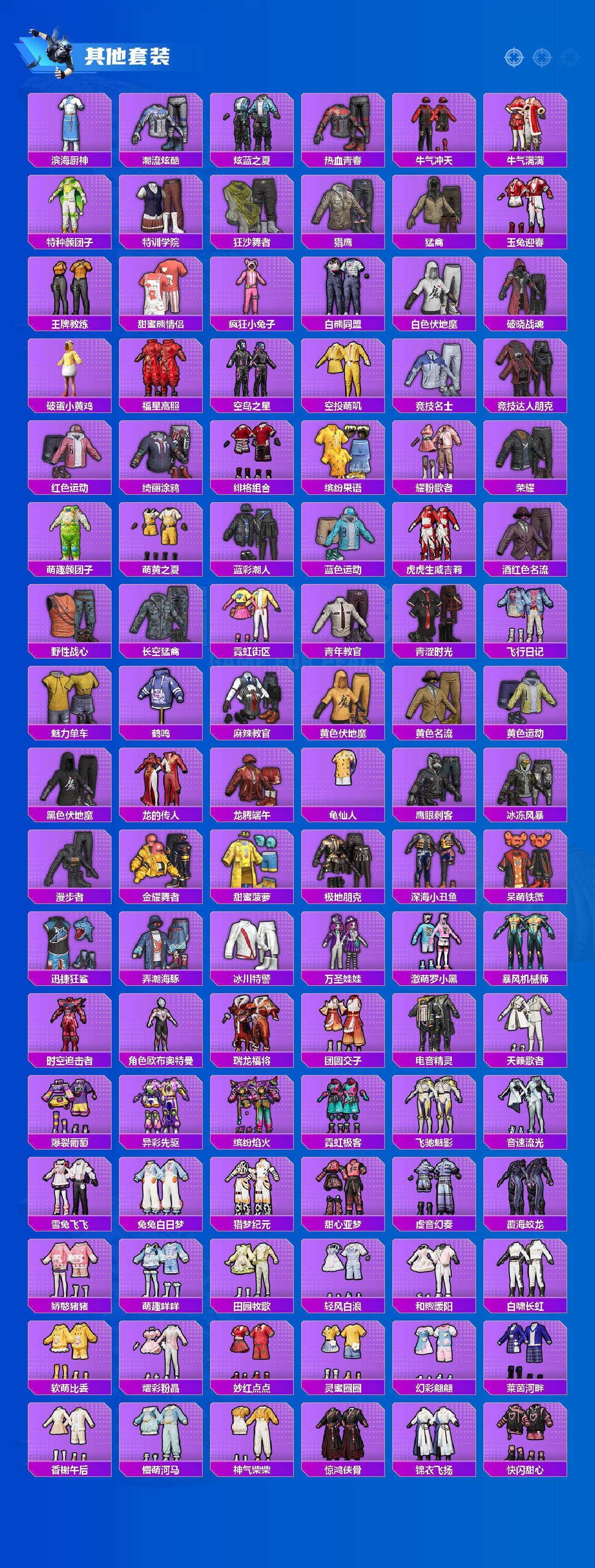 套装-梦幻火箭,套装-缤纷油彩,套装-都市猎人,套装-深海小丑鱼,套装-智能音符,套装-山涧鹿灵,角色-洛天依,套装-橘柚倾心,套装-飒粉甜心,套装-创世·救赎,角色-觉醒初号机,套装-鹰眼刺客,套装-呆萌铁蟹,套装-迅捷狂鲨,套装-万圣娃娃,兔兔白日梦套装