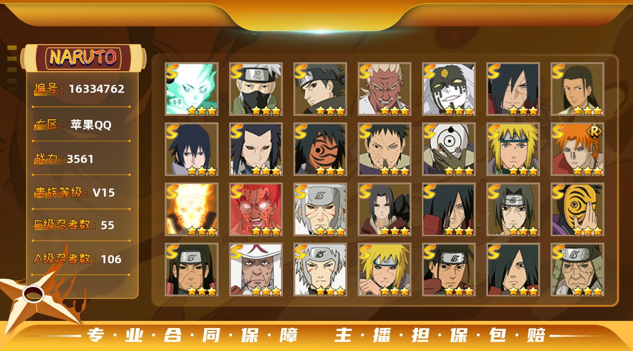 - 火影忍者手游/QQ/苹果QQ101-200区/101区雷牙