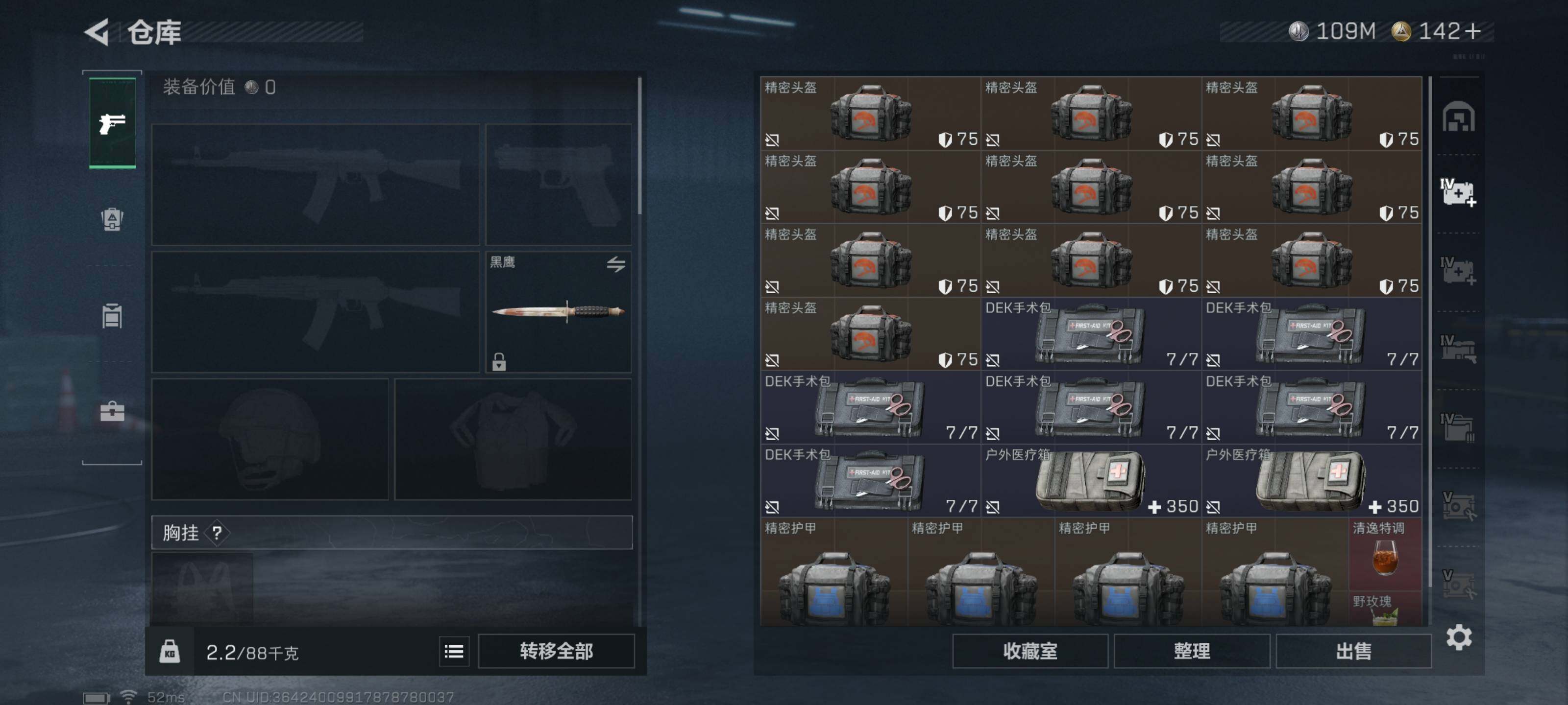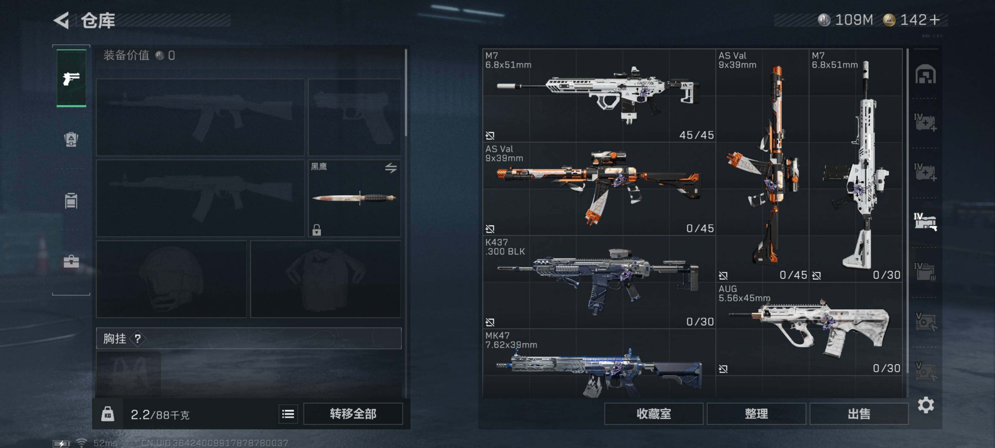 - [11604287]总资产:151.8 0近战传说 4传说枪械 顶级安全箱(3×3)9.15号到期 段位:上等兵 可二次 可修改实名 烽火地带段位:钻石 全面战场段位:上等兵 哈夫币:22.973 传说武器皮肤:AK-12突击步枪-夜鹰,复合弓-黑-天际线,CAR-15突击步枪-阿米娅,725双管霰弹枪-送葬人-无题密令 史诗武器皮肤:PKM通用机枪-蝮蛇,SR-25射手步枪-尖端治疗,PKM通用机枪-荒野求生,AS Val突击步枪-尖端治疗,Ash-12战斗步枪-守夜人,SR-3M紧凑突击步枪-荒野求生,勇士冲锋枪-深海恐惧,AKM突击步枪-林中猎手,M16A4突击步枪-竞赛选手,PKM通用机枪-守夜人,SVD狙击步枪-荒野求生,SV-98狙击步枪-林中猎手,PTR-32突击步枪-英雄,PSG-1射手步枪-无垢,腾龙突击步枪-无垢,MP7冲锋枪-无垢,沙漠之鹰-曙光,SVD狙击步枪-阿萨拉工艺,M700狙击步枪-竞技风