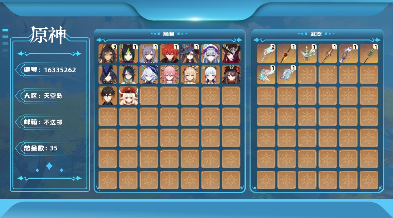 [16335262]58级/35黄/女主/17个五星角色/9个五星武器