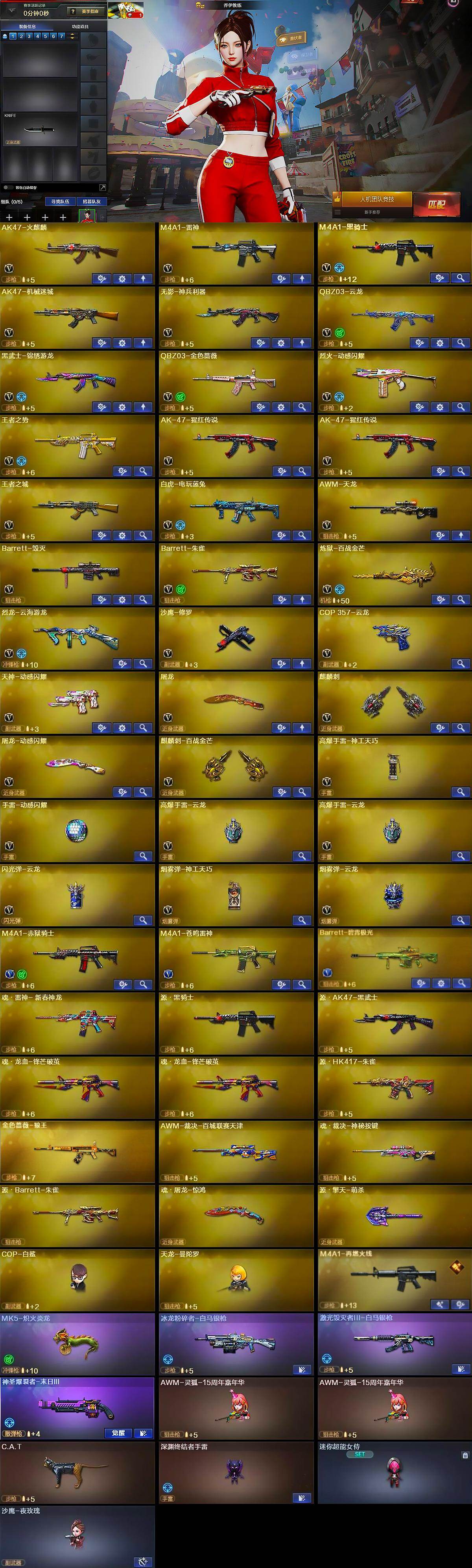 【人偶武器】:COP-白鲨,天龙-曼陀罗,MK5-炽火炎龙,AWM-灵狐-15周年嘉年华*2,C.A.T,深渊终结者手雷,迷你超能女侍,沙鹰-夜玫瑰,灵狐娃娃手雷