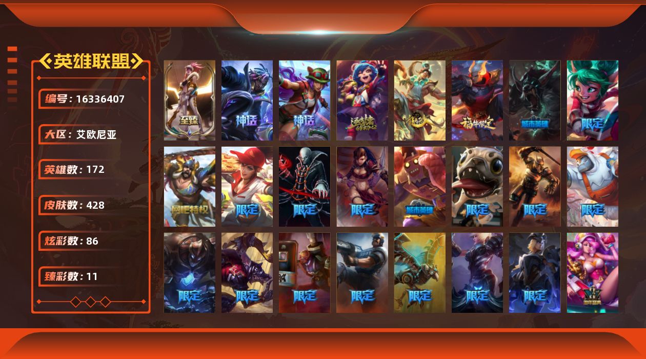 [16336407]【店主推荐捡漏号!可直接换绑】铂金段位-172英雄-428皮肤-86炫彩-0终极-4神话-72限定-43传说-83史诗