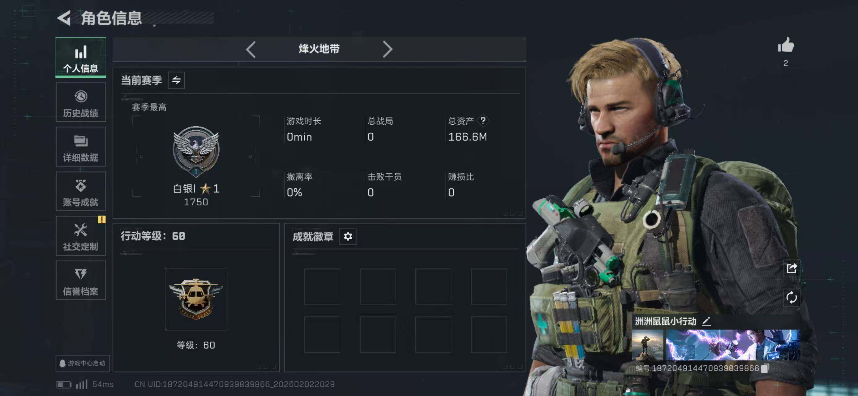 [16337321]【特价出售/店主推荐】166m总资产-19966k哈伏币-60烽火等级-白银-8战场等级-列兵