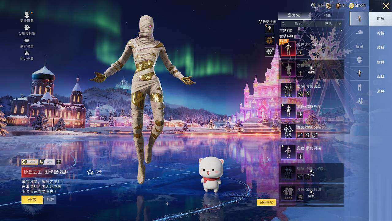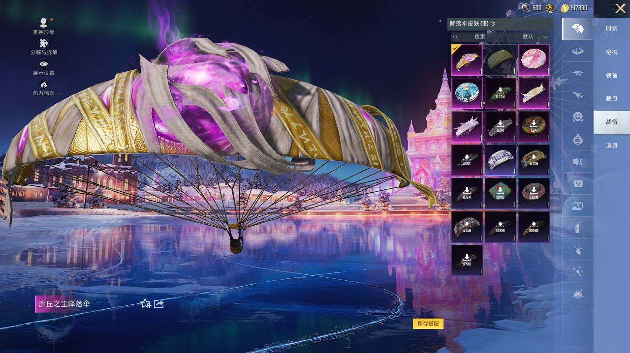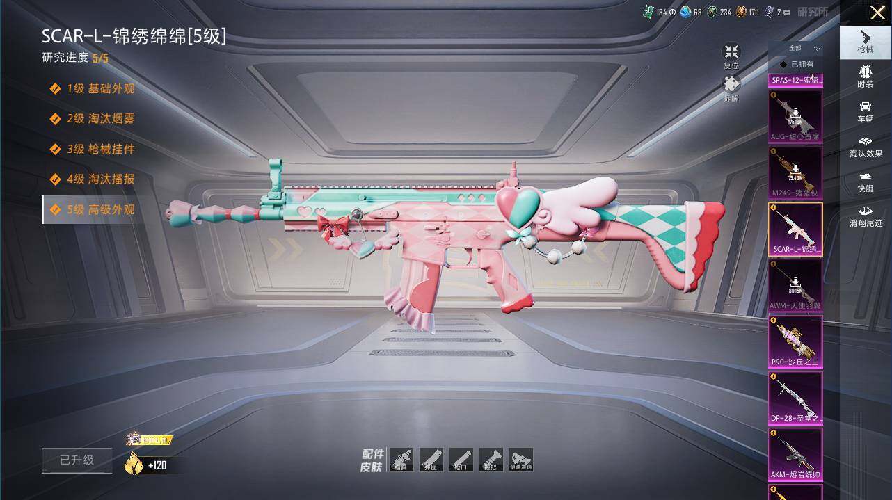 AKM-绿萝繁花,SCAR-L-锦绣绵绵,M416-电玩时刻,M762-电糖天使,P90-沙丘之主