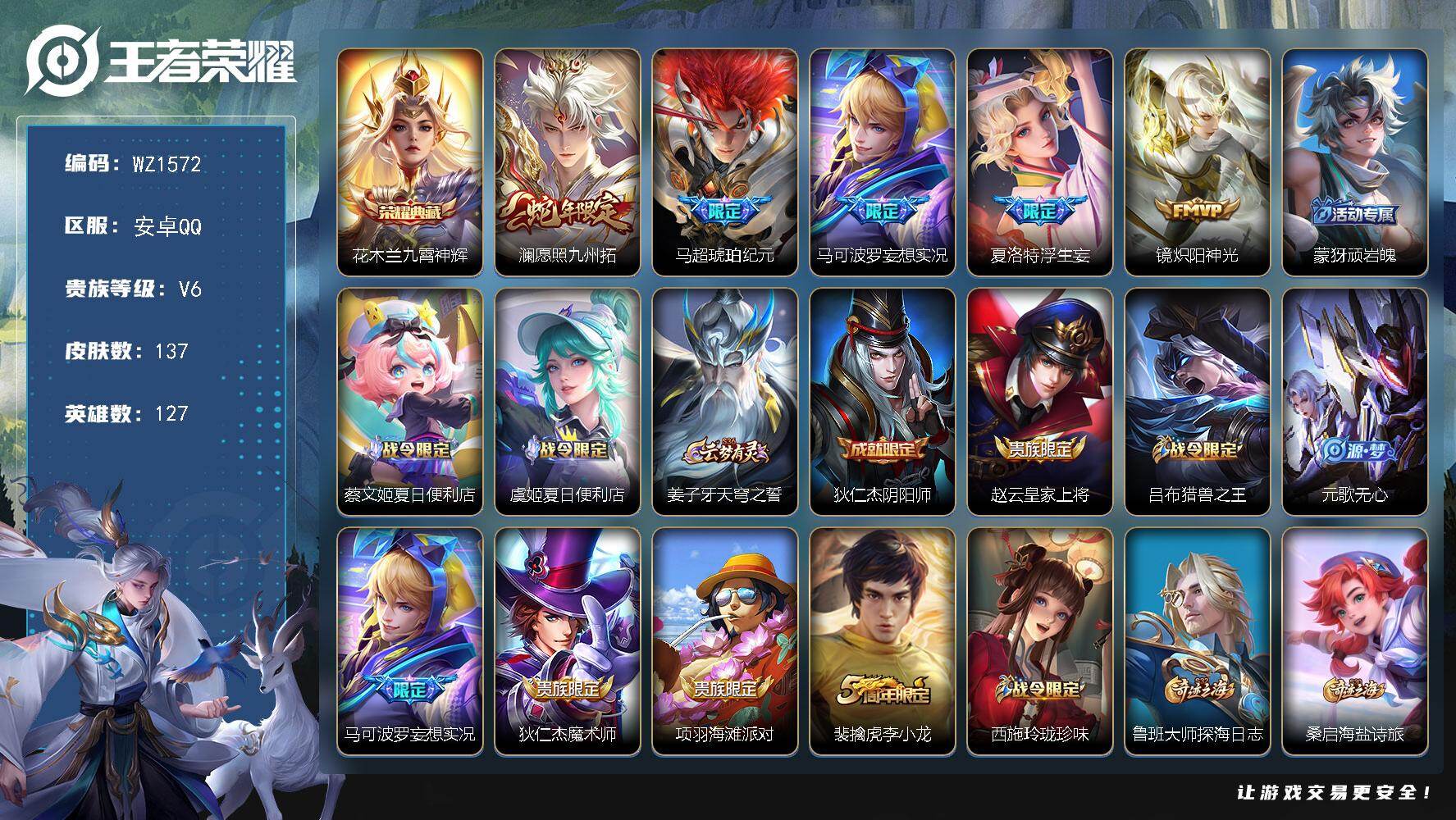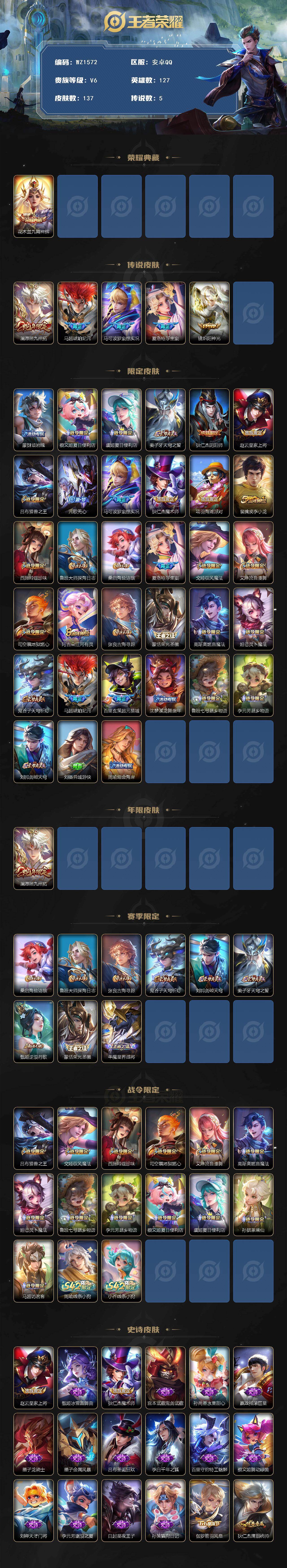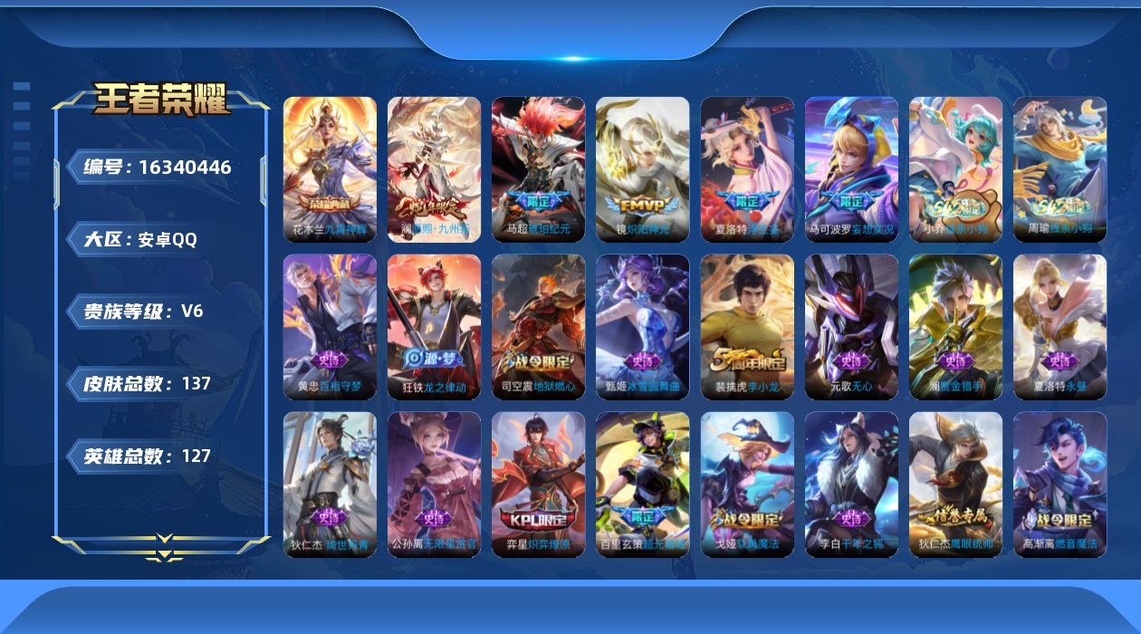 [16340446]安卓Q-V6-127英雄-137皮肤-1典藏皮肤-5传说-44史诗