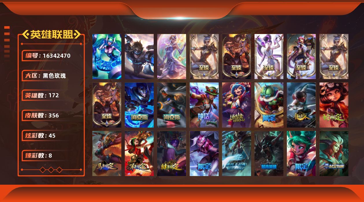 [16342470]可二次【特价出售/店主推荐】未定级段位-172英雄-356皮肤-45炫彩-3终极-10神话-66限定-56传说-119史诗
