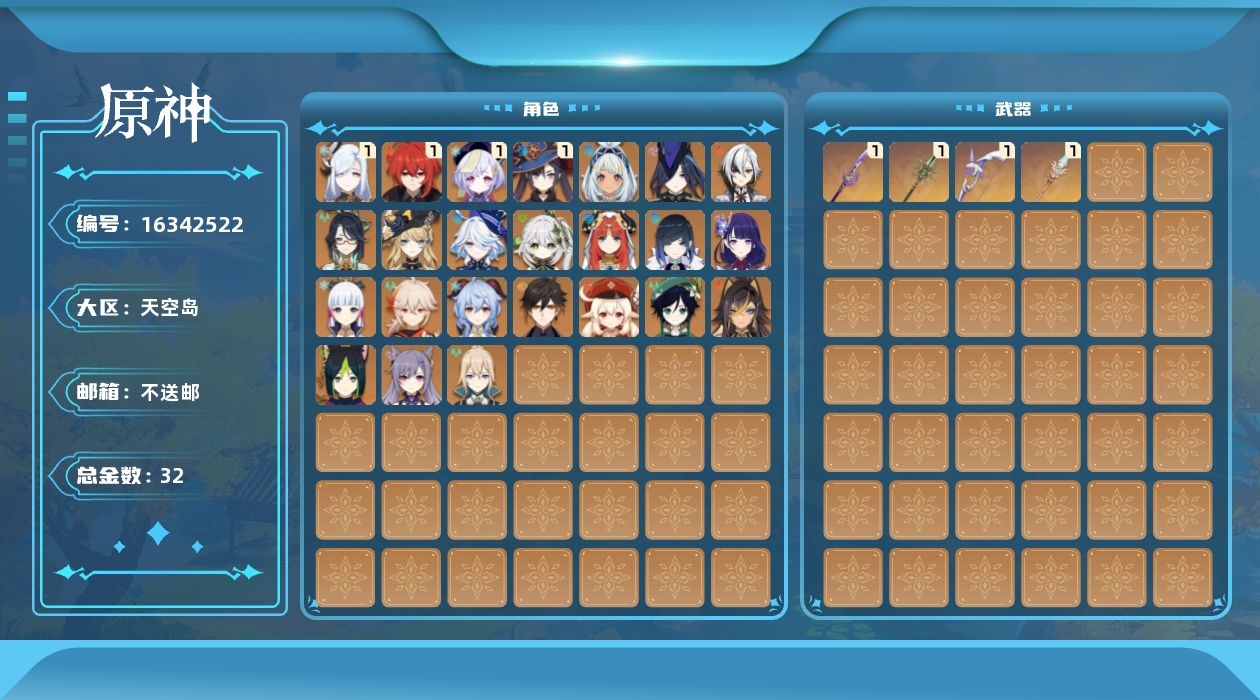 [16342522]60级/32黄/男主/24个五星角色/4个五星武器
