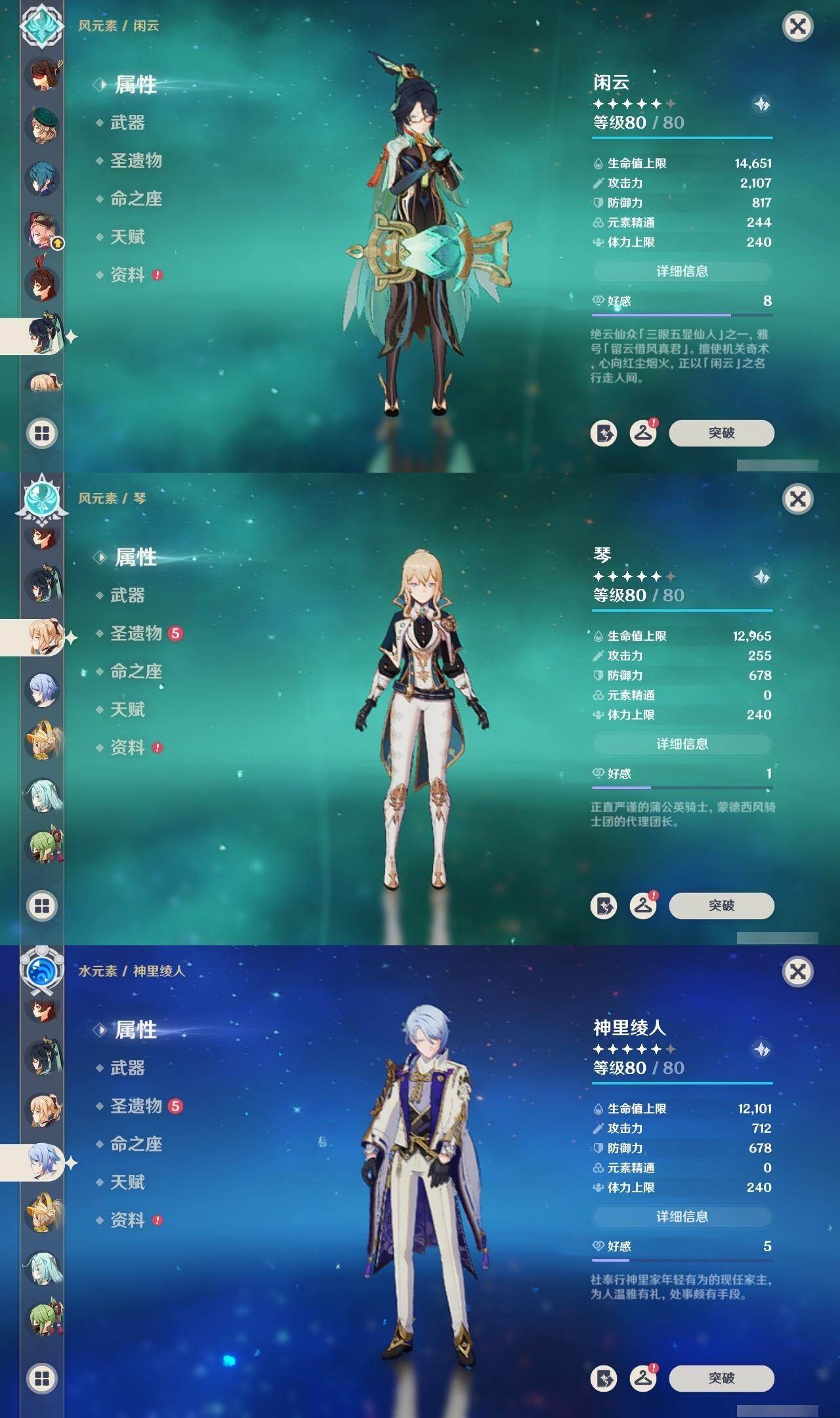 申鹤,钟离,宵宫,迪卢克,七七,温迪,枫原万叶,琴,刻晴,莫娜