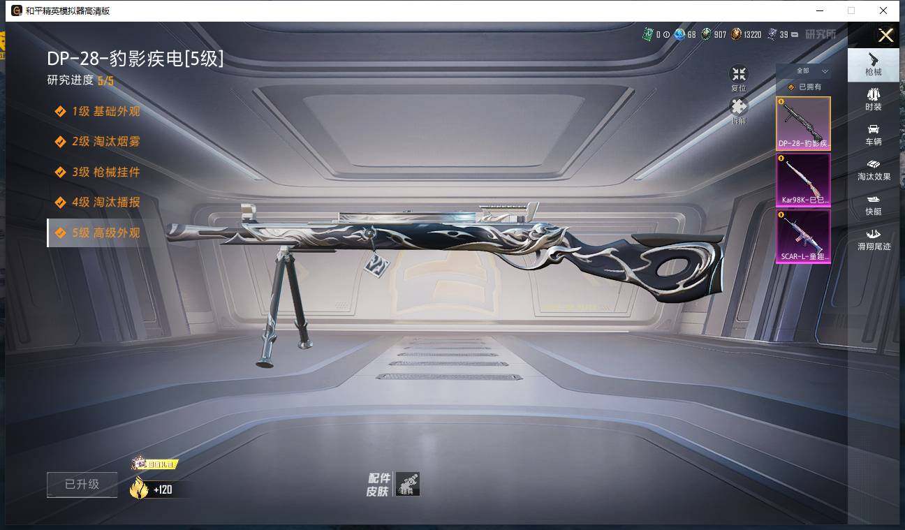 【粉色枪皮等级】:SCAR-L-童趣迷兔(七级),Kar98K-巳巳如意(五级),DP-28-豹影疾电(五级)