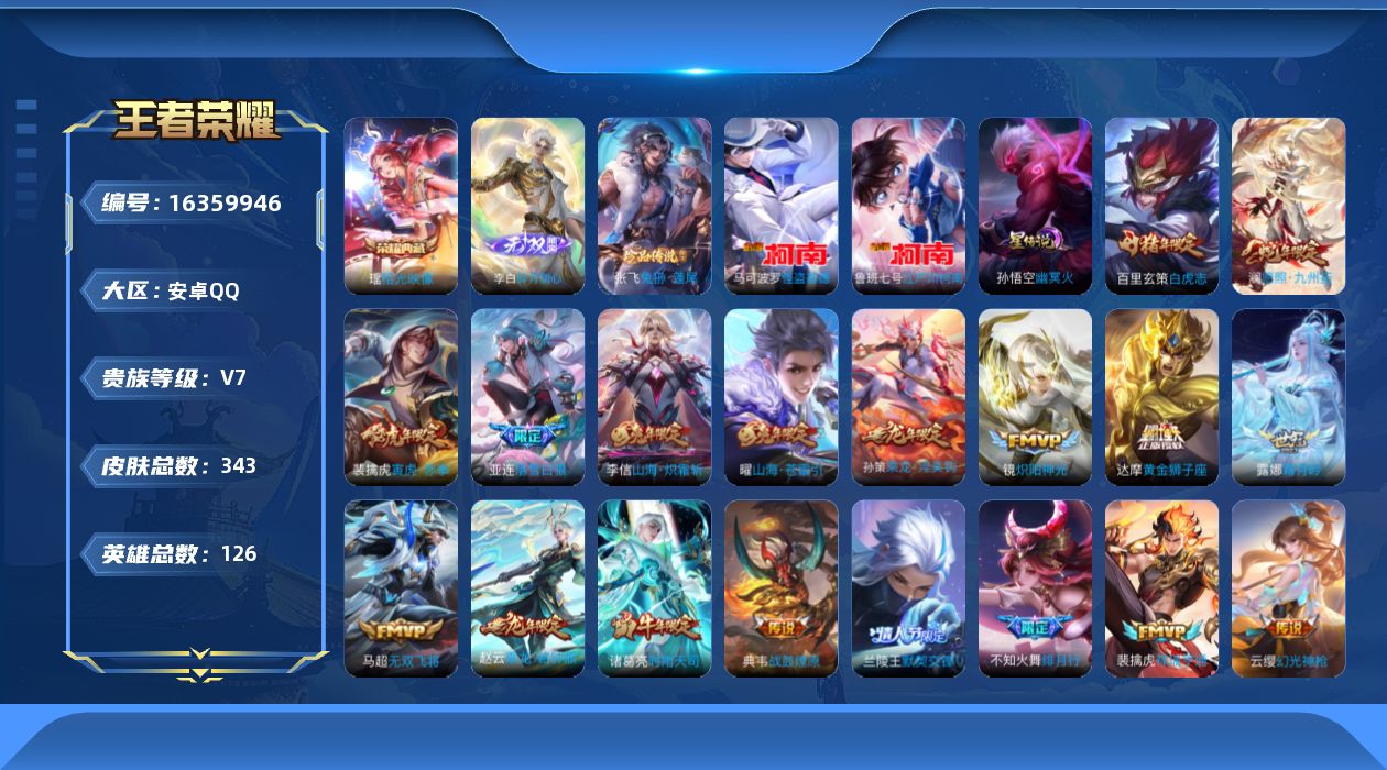 [16359946]【特价出售/店主推荐 打野44段 对抗路33段】安卓Q-V7-最强王者段位-126英雄-343皮肤-1典藏皮肤-1无双-2星传说-3珍品传说-30传说-101史诗 【英雄全皮】:刘邦全皮,刘备全皮,苏烈全皮,蒙恬全皮,影全皮 【荣耀典藏】:瑶拾光映像 【无双皮肤】:李白碎月剑心 【珍品传说】:马可波罗怪盗基德,鲁班七号江户川柯南,张飞兔狲蓬尾 【传说皮肤】:后羿神树通天,澜愿照九州拓,云缨幻光神枪,裴擒虎祥瑞亨通,桑启鸣野蒿,亚连落雪白狼,典韦战鼓燎原,孙策乘龙淬吴钩,赵云乘龙铭钟鼎,露娜霜月吟,项羽无限倾心,孙悟空齐天大圣,曜山海苍雷引,李信山海炽霜斩,吕布怒海麟威,李白诗剑行,不知火舞绯月行,马超无双飞将,孙策末日机甲,裴擒虎寅虎赤拳,兰陵王默契交锋,诸葛亮时雨天司,镜炽阳神光,虞姬启明星使,刘备时之恋人,张良黄金白羊座,达摩黄金狮子座,百里玄策白虎志,梦奇胖达荣荣,孙悟空地狱火 【限定皮肤】:姜子牙天穹之誓,李白谪仙醉月,狄仁杰阴阳师,廉颇寅虎御盾,赵云皇家上将,墨子神迹守卫,孙尚香蔷薇恋人,鲁班七号狮舞东方,庄周高山流水,高渐离玩趣恶龙,阿轲迷踪丽影,钟无艳王者之锤,芈月幻夜卜梦,元歌云间偶戏,夏侯惇朔风刀,曹操天狼征服者,马可波罗暗影游猎,马可波罗山海玄木吟,狄仁杰魔术师,狄仁杰万华元夜,达摩沙漠行僧,项羽海滩派对,项羽霸王别姬,项羽无限倾心,老夫子醍醐杖,老夫子航海奇遇记,关羽冰锋战神,程咬金演武夺筹,露娜一生所爱,刘邦夺宝奇兵,韩信逐梦之影,韩信飞衡,兰陵王默契交锋,兰陵王金庭之子,花木兰默契交锋,不知火舞绯月行,亚瑟潮玩骑士王,孙悟空至尊宝,孙悟空大圣娶亲,孙悟空孙行者,孙悟空齐天大圣,牛魔奔雷神使,刘备百相守梦,李元芳银河之约,李元芳云中旅人,虞姬霸王别姬,虞姬启明星使,钟馗驱傩正仪,杨玉环遇见飞天,雅典娜黎明之约,蔡文姬繁星吟游,太乙真人华丽摇滚,鬼谷子原初探秘者,鬼谷子五谷丰年,诸葛亮时雨天司,黄忠火炮绅士,苏烈玄武志,苏烈千军破阵,百里玄策白虎志,百里玄策原初追逐者,弈星混沌棋,梦奇顽趣,公孙离蜜橘之夏,沈梦溪星空之诺,沈梦溪大漠名商,明世隐疑决卦,裴擒虎李小龙,裴擒虎寅虎赤拳,裴擒虎擒涛扼浪,云中君纤云弄巧,李信山海炽霜斩,猪八戒西部大镖客,上官婉儿梁祝,嫦娥如梦令,嫦娥暖冬兔眠,曜山海苍雷引,鲁班大师探海日志,镜匿光追影者,桑启海盐诗